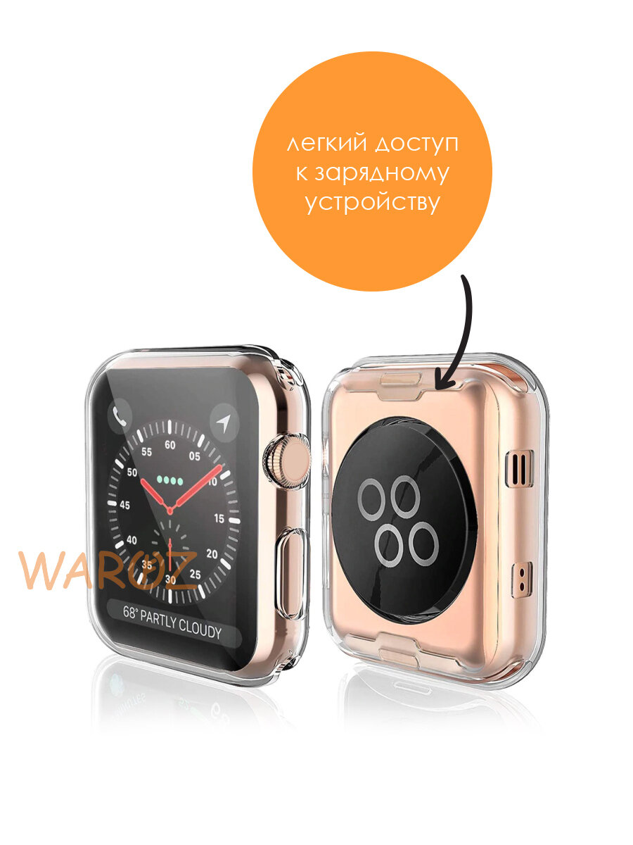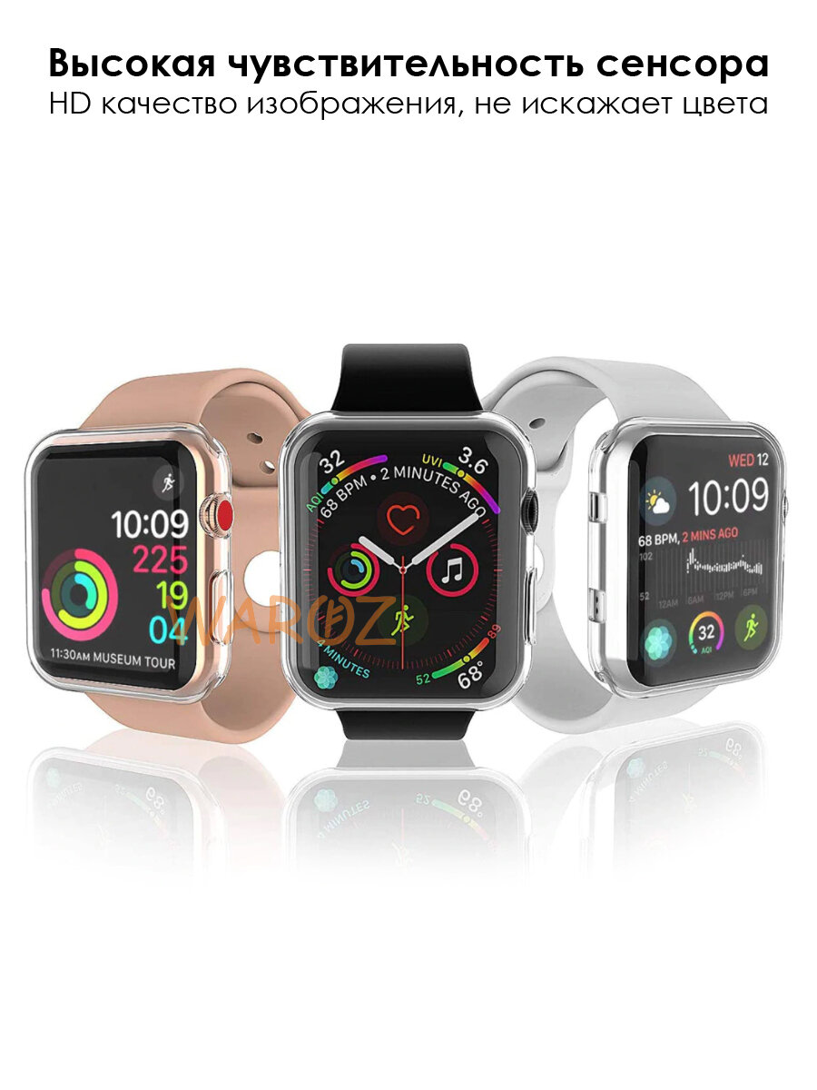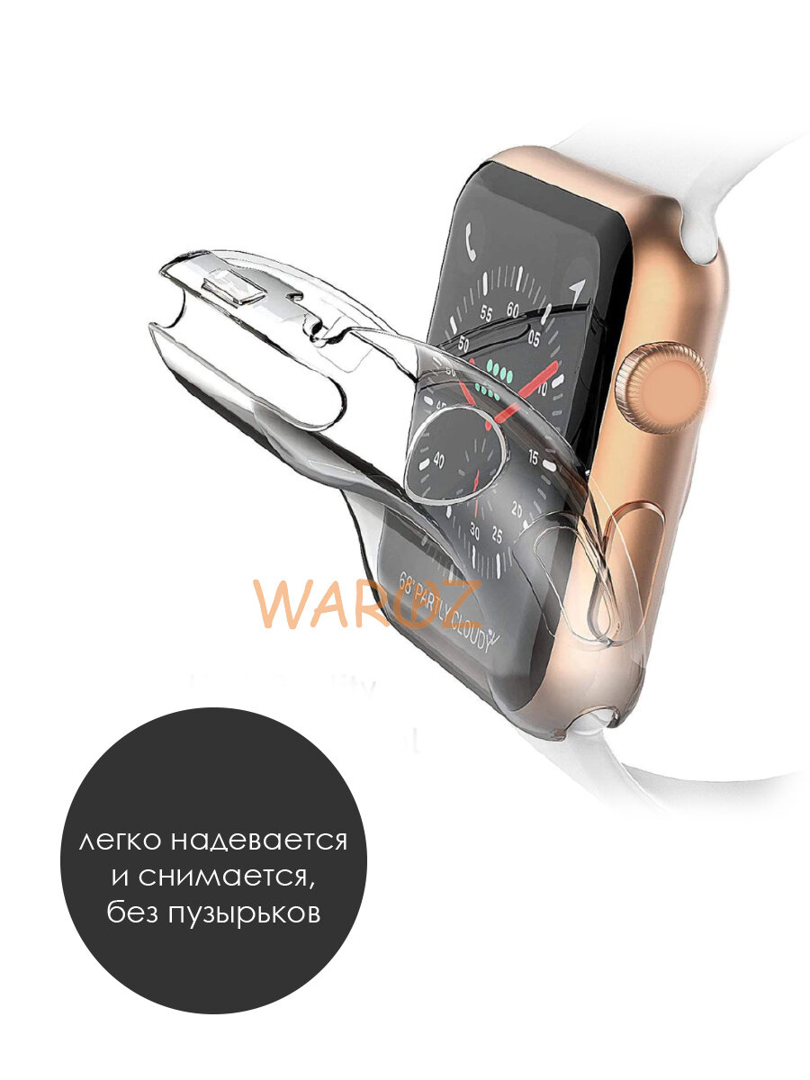 Чехол силиконовый на умные часы Apple Watch 3, 4, 5, SE, 6 прозрачный 44 мм защита от царапин, бампер для Эпл Вотч интересное: