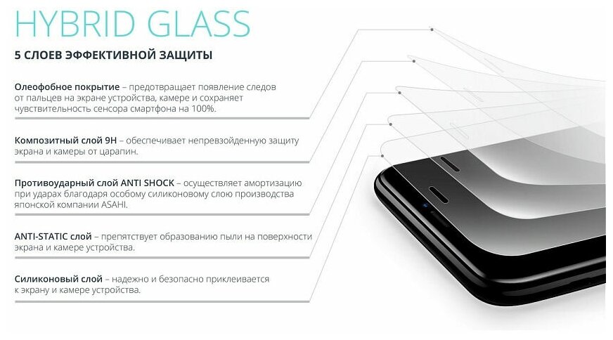 | Особенности | гибридное стекло, олеофобное покрытие, противоударный |