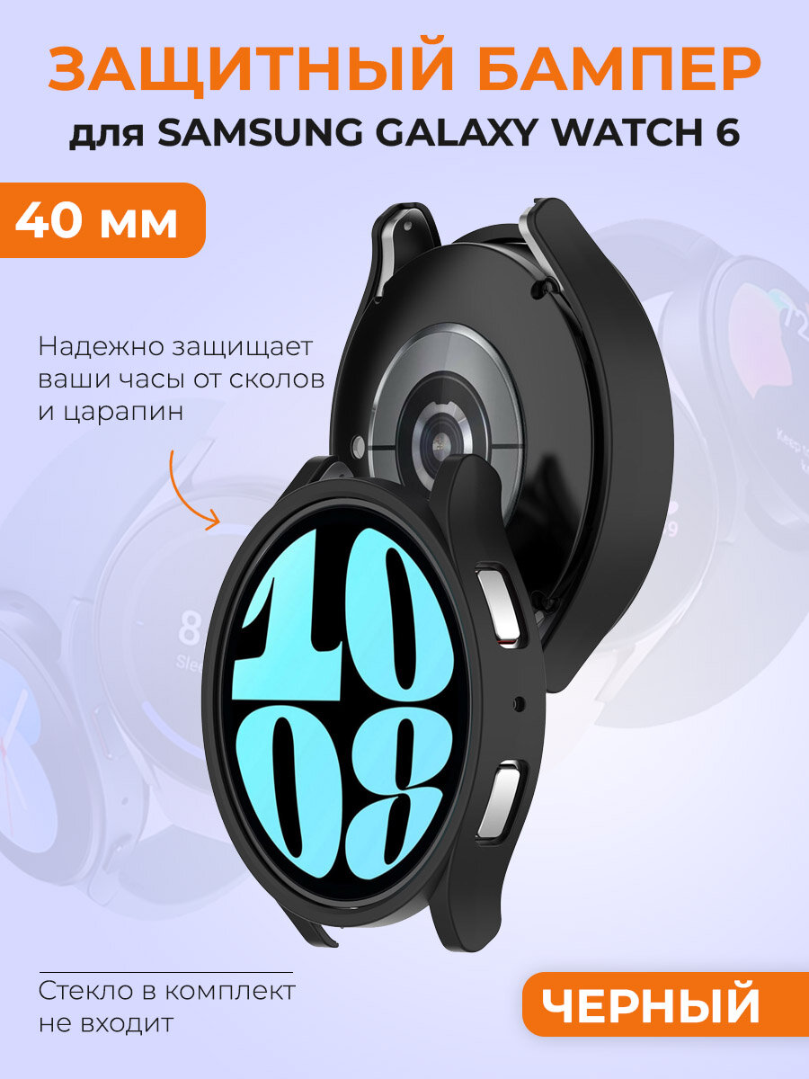 Защитный бампер для Samsung Galaxy Watch 6, 40 мм, черный интересное: