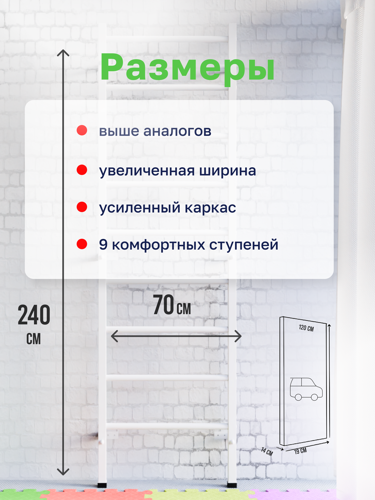 | Размеры шведской стенки (ШxГxВ) | 71x14x240 см |