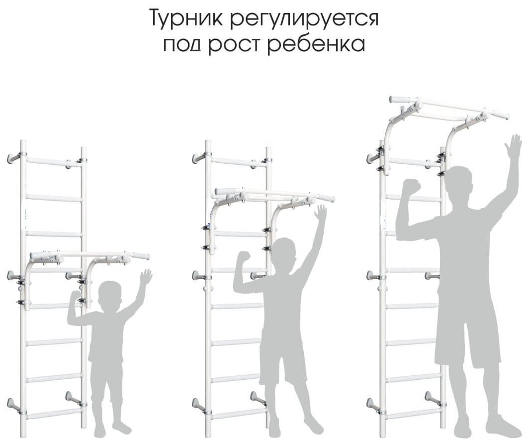 | Особенности | массажные ступени / противоскользящее покрытие перекладин / съемный турник / широкий хват турника |