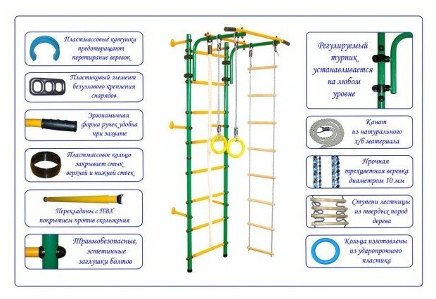 Шведская стенка с турником и брусьями. Спортивный комплекс со скамьей Богатырь 3в1