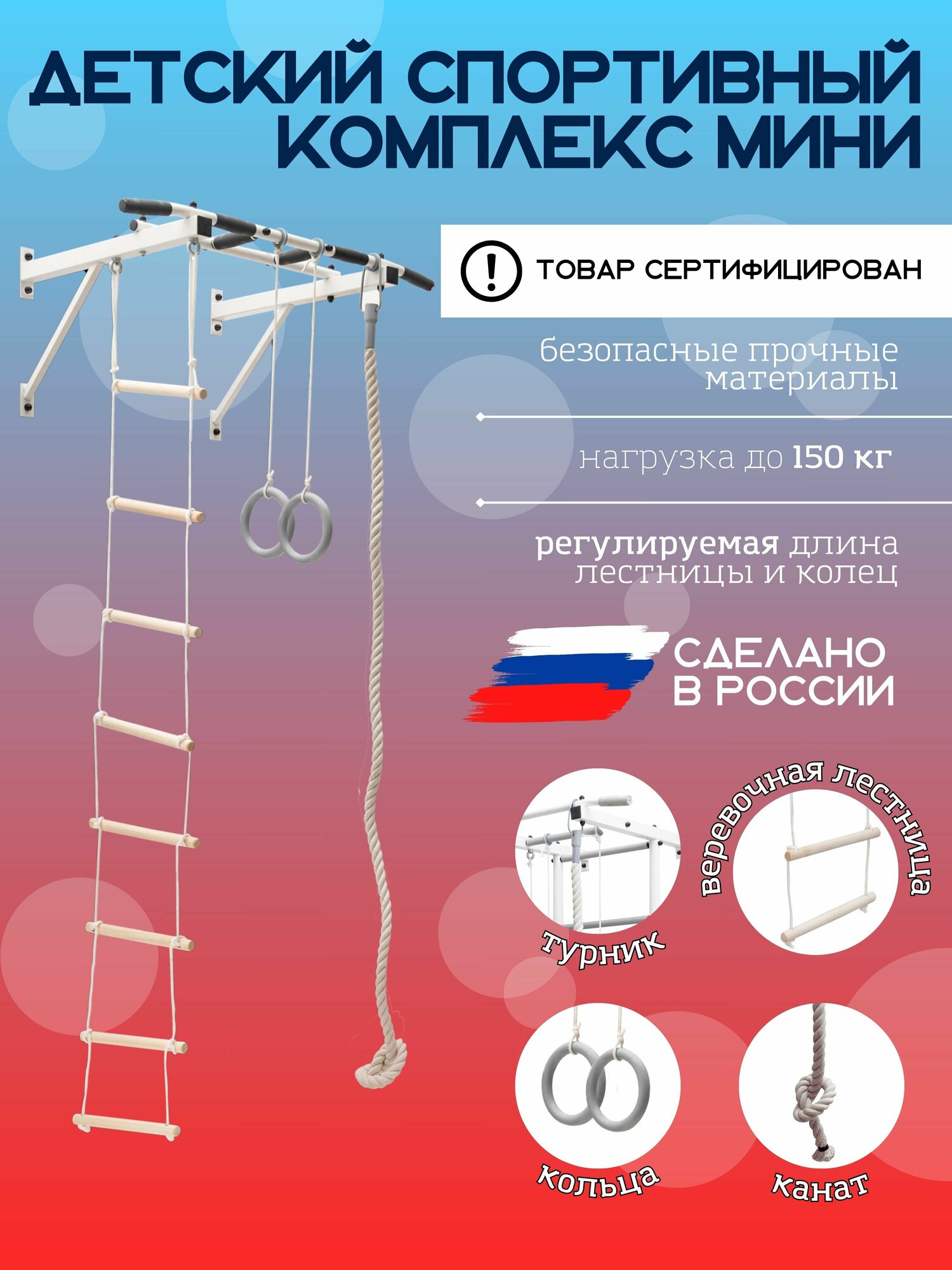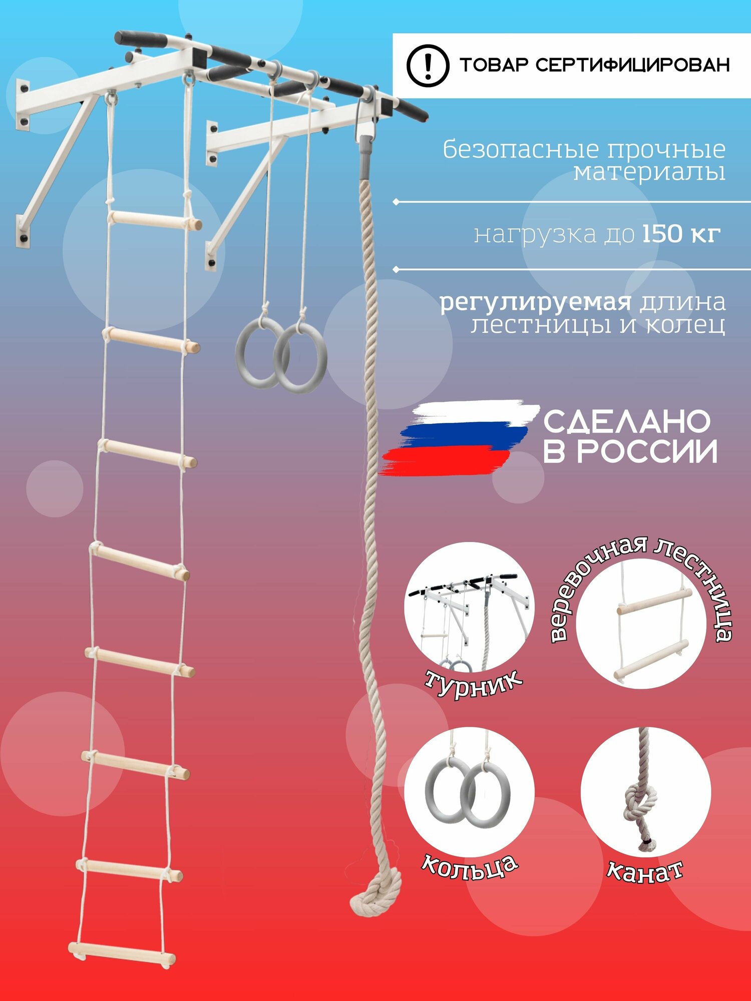 | Комплектация | веревочная лестница / гимнастические кольца / канат / турник |
