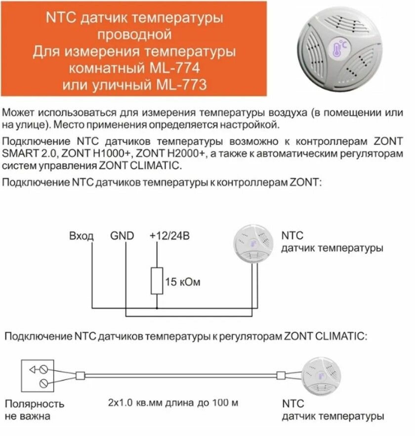 Датчик температуры уличный МЛ-773 (NTC) проводной ZONT интересное: