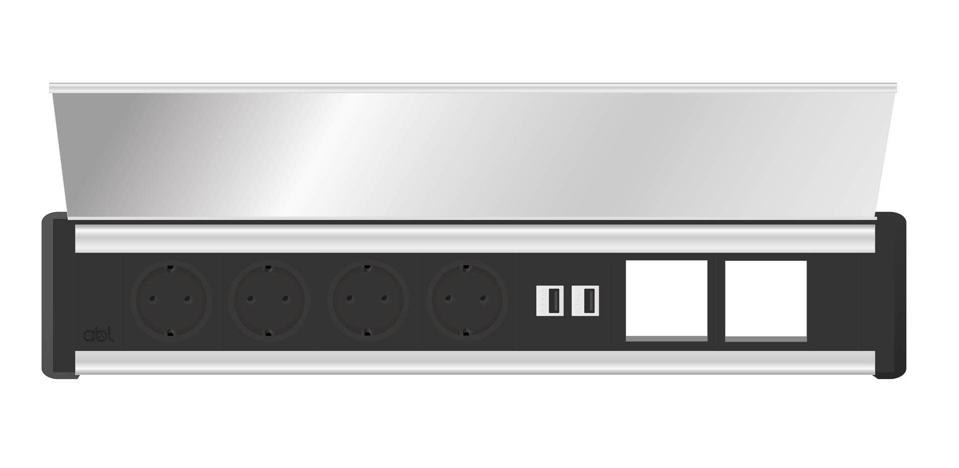 Купить ABL 2G00F4F5- Встраиваемая розеточная станция серии Level тип C (Level-C) с 4 розетками, 2xUSB-A и 2 слотами для IMP, черная с серебристым
