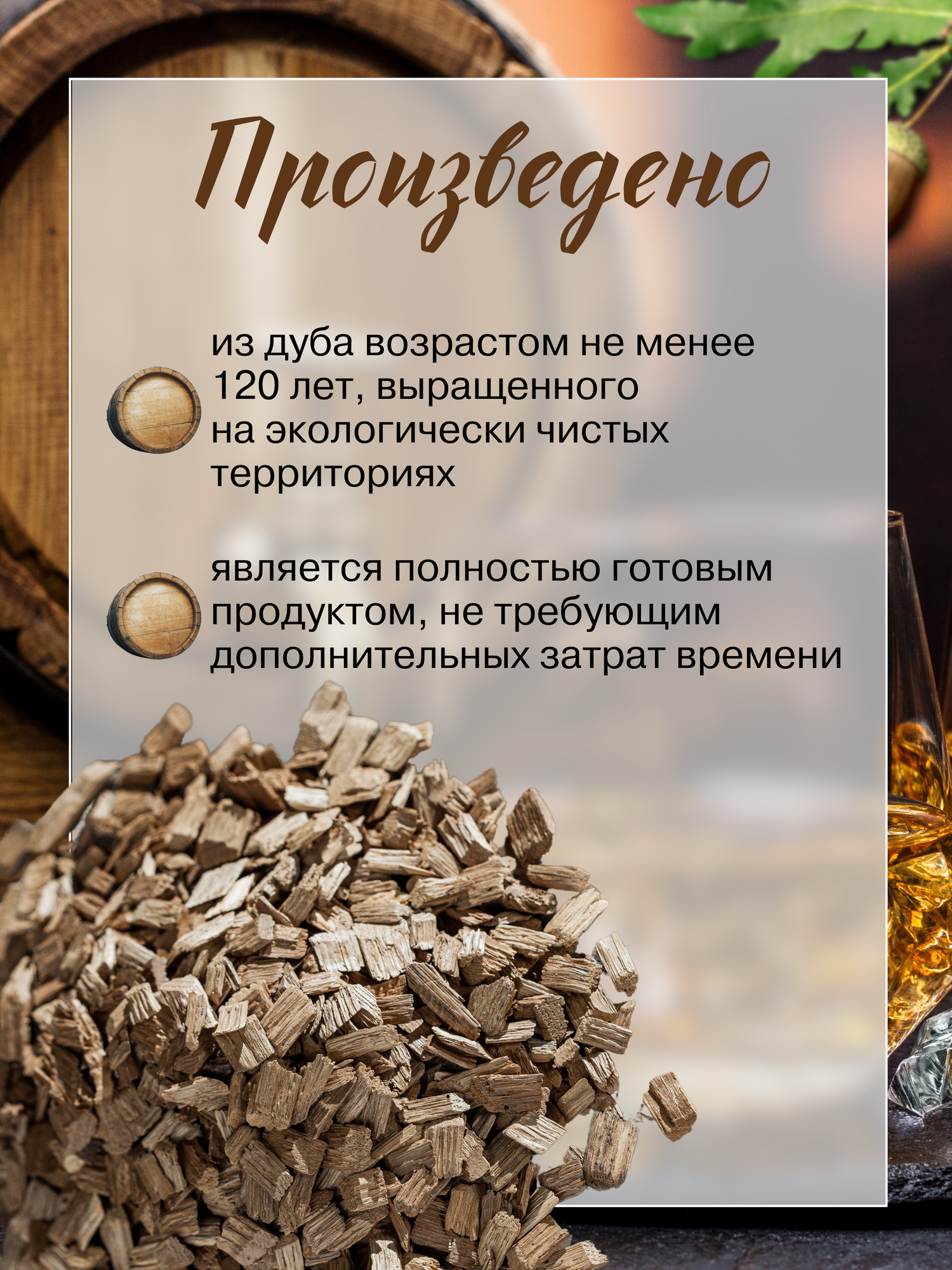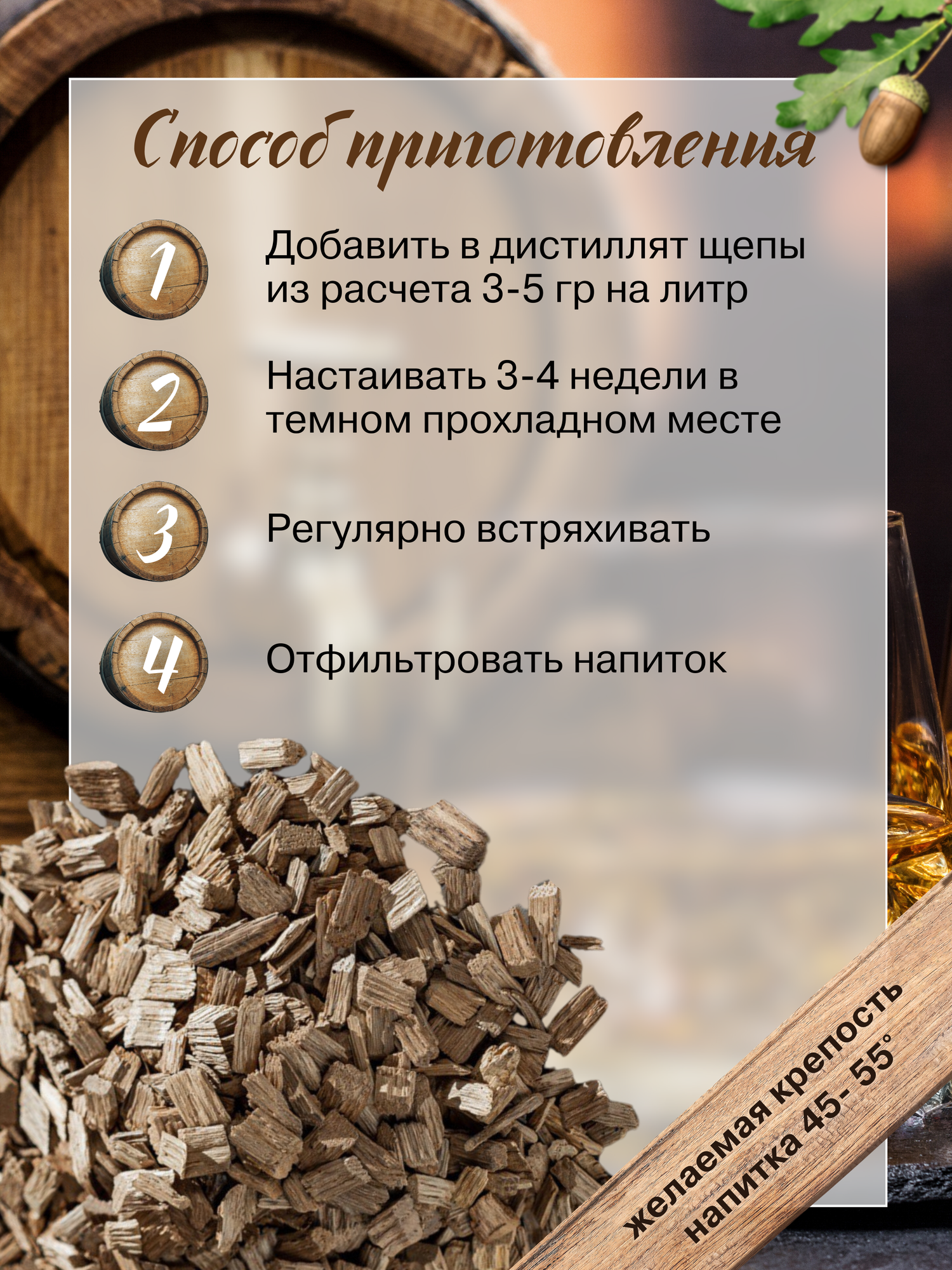| Дополнительная информация | Щепа дубовая сильного обжига |