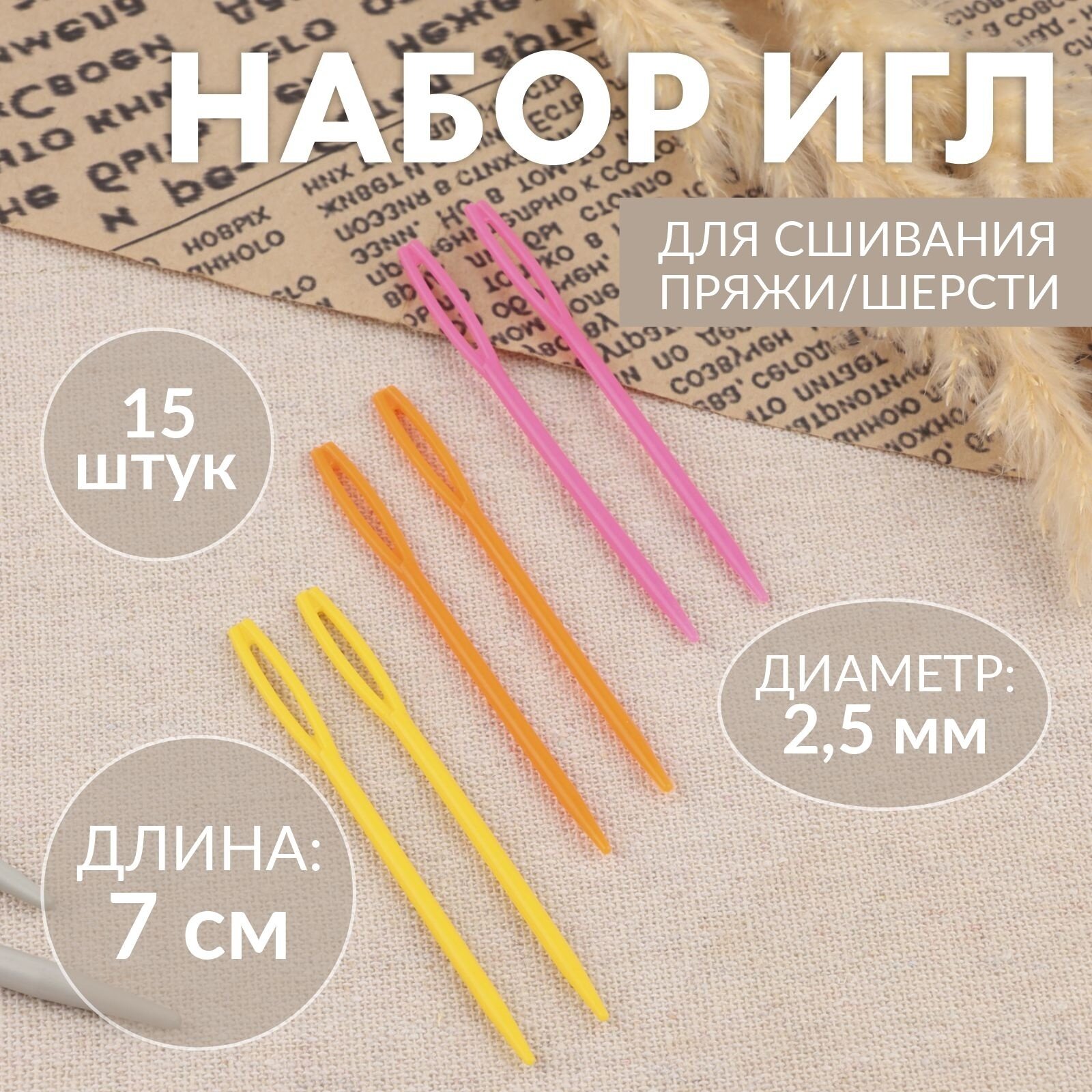 Набор игл для сшивания, пластик, d = 2,5 мм, 7 см, 15шт, цвет разноцветный 3шт. интересное:
