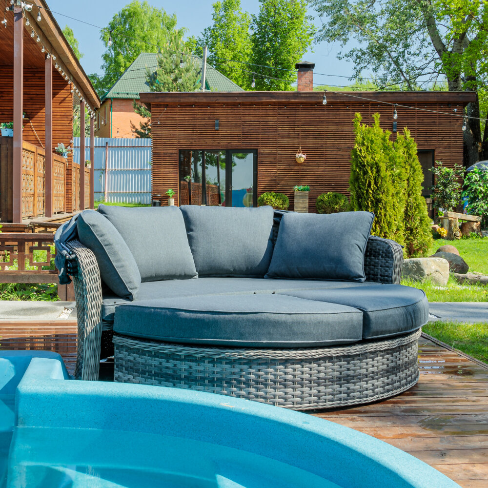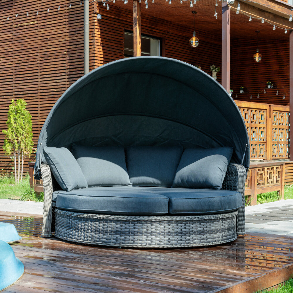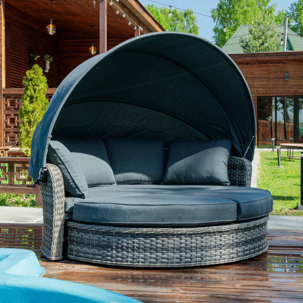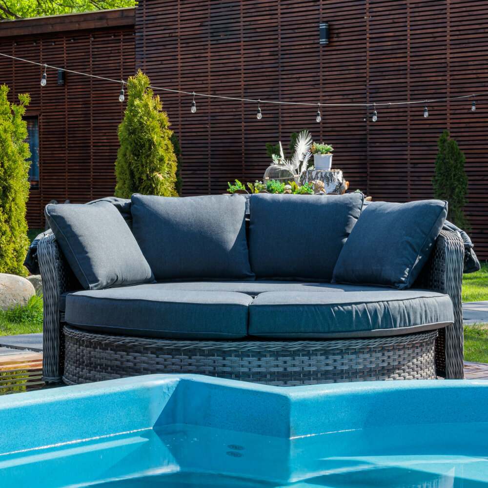 Диван M-group мамасан без ротанга чёрное серая подушка