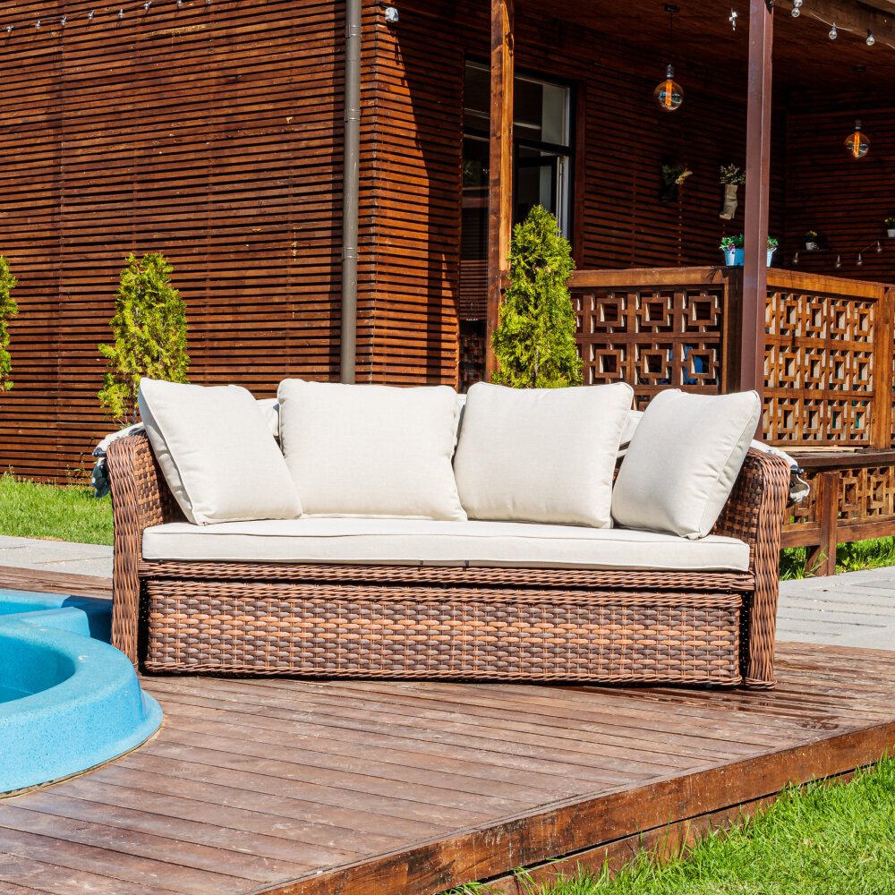 Диван 4SIS "Сан Ремо" диван 2-местный плетеный из роупа, каркас алюминий белый, роуп бежевый, ткань бежевая арт. GFS4762S