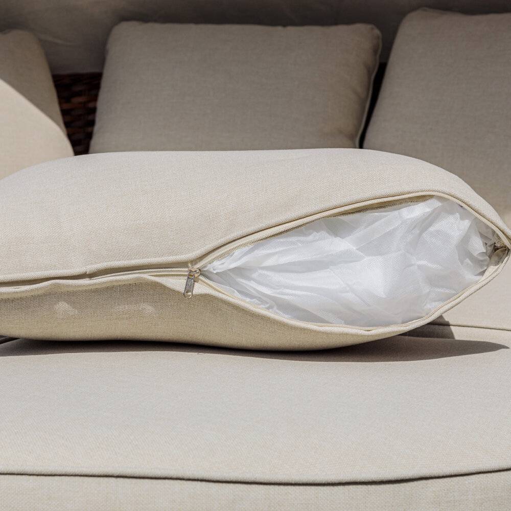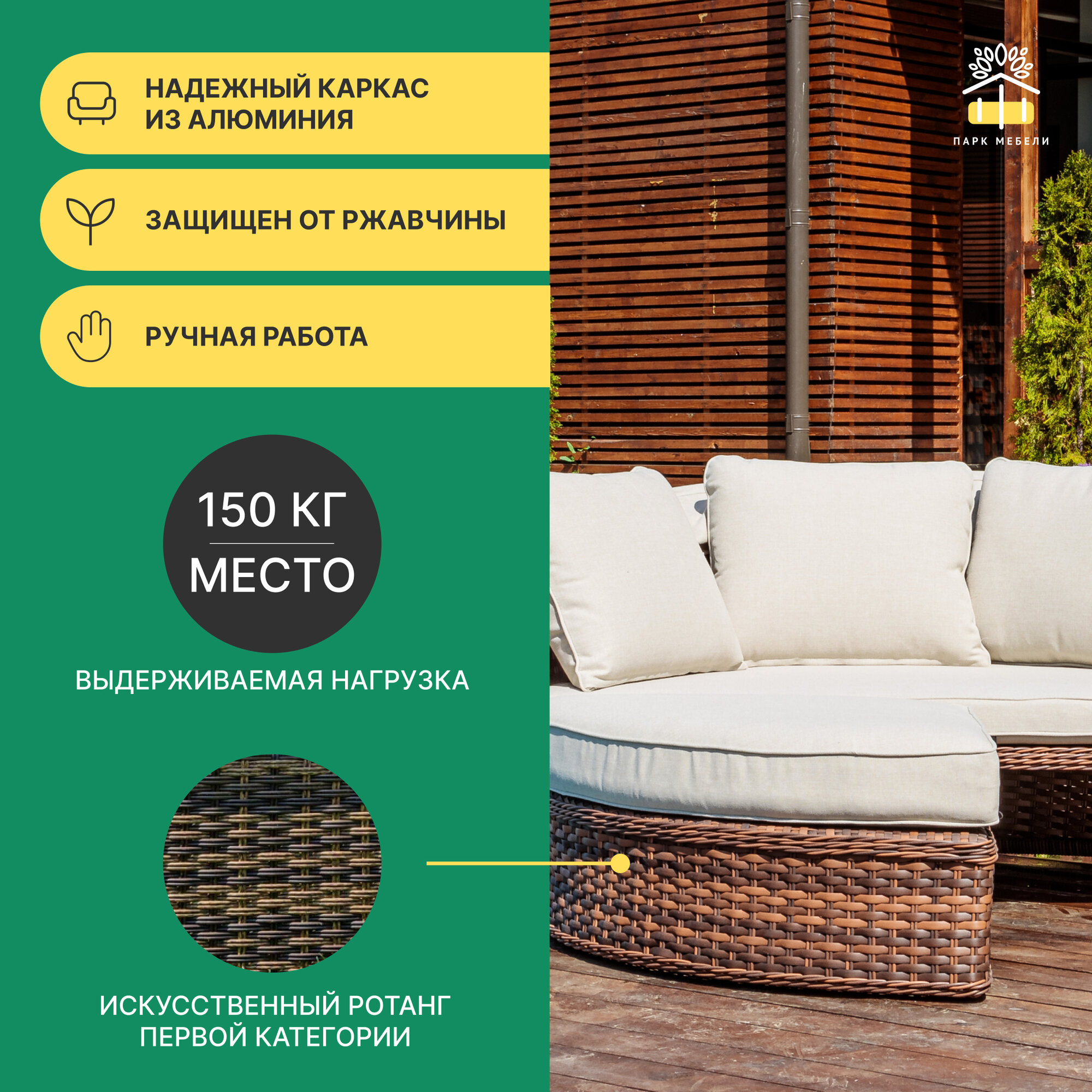 Диван 4SIS "Милан" диван 3-местный плетеный из роупа, каркас алюминий белый муар, роуп бежевый круглый, ткань бежевая 052 арт. MIL-S-3-001 W Mua beige(beige052)