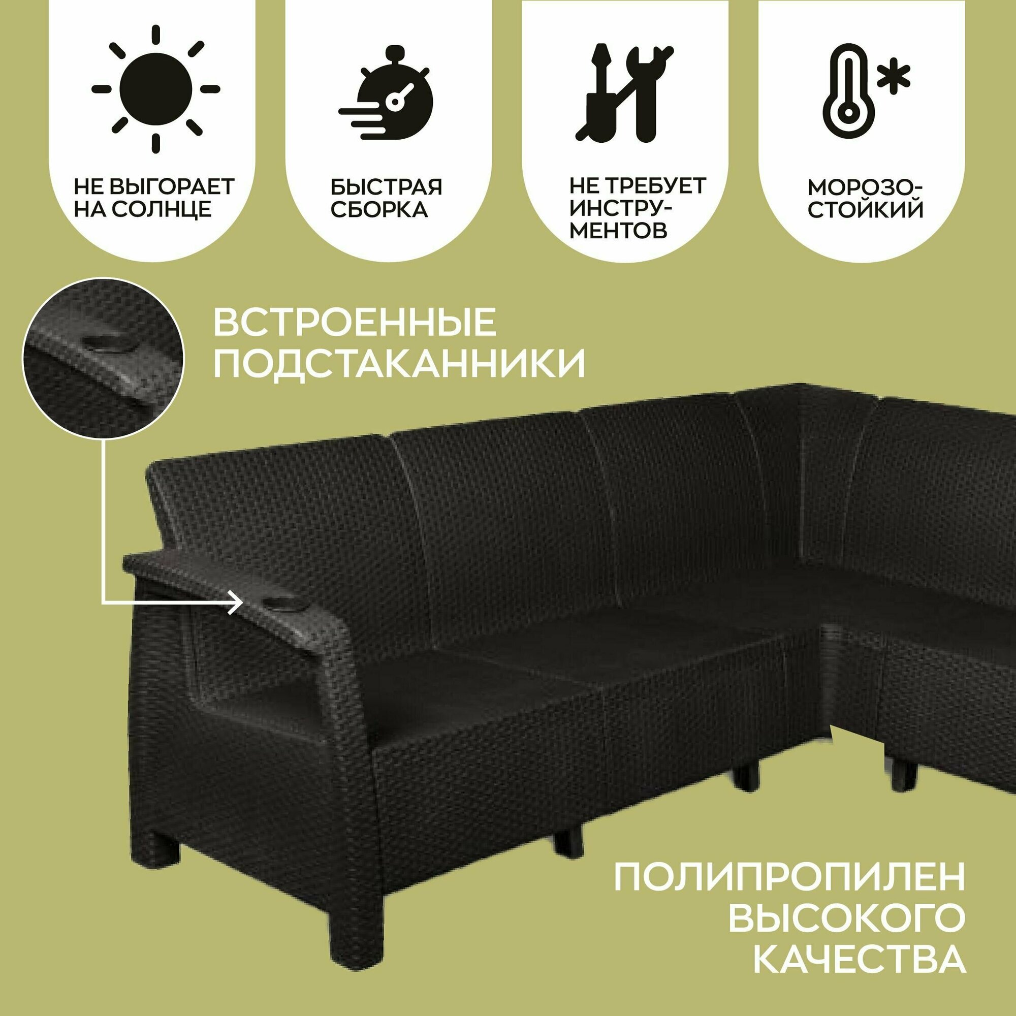 Диван садовый Ротанг угловой садовый 200x200x79 см, мокко (подушки серого цвета)