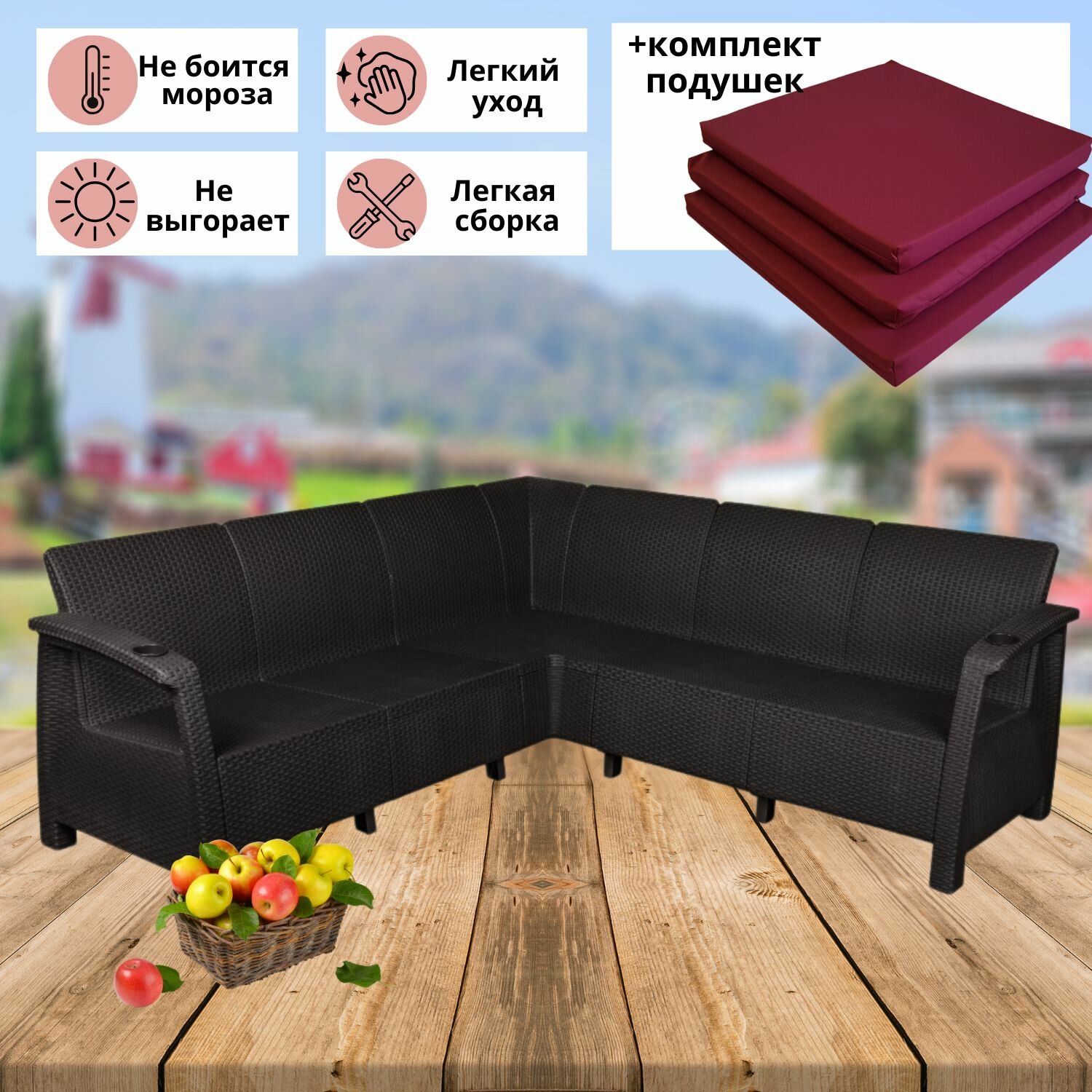 Диван садовый Ротанг угловой садовый 200x200x79 см, мокко (подушки бордового цвета) интересное: