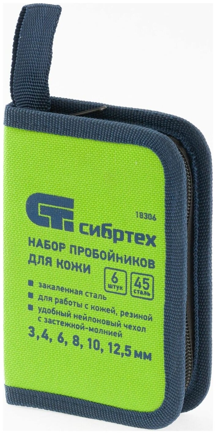 Набор пробойников для кожи 3; 4; 6; 8; 10; 12,5 мм, 6 шт, чехол, Сибртех 18306 Сибртех 18306 .