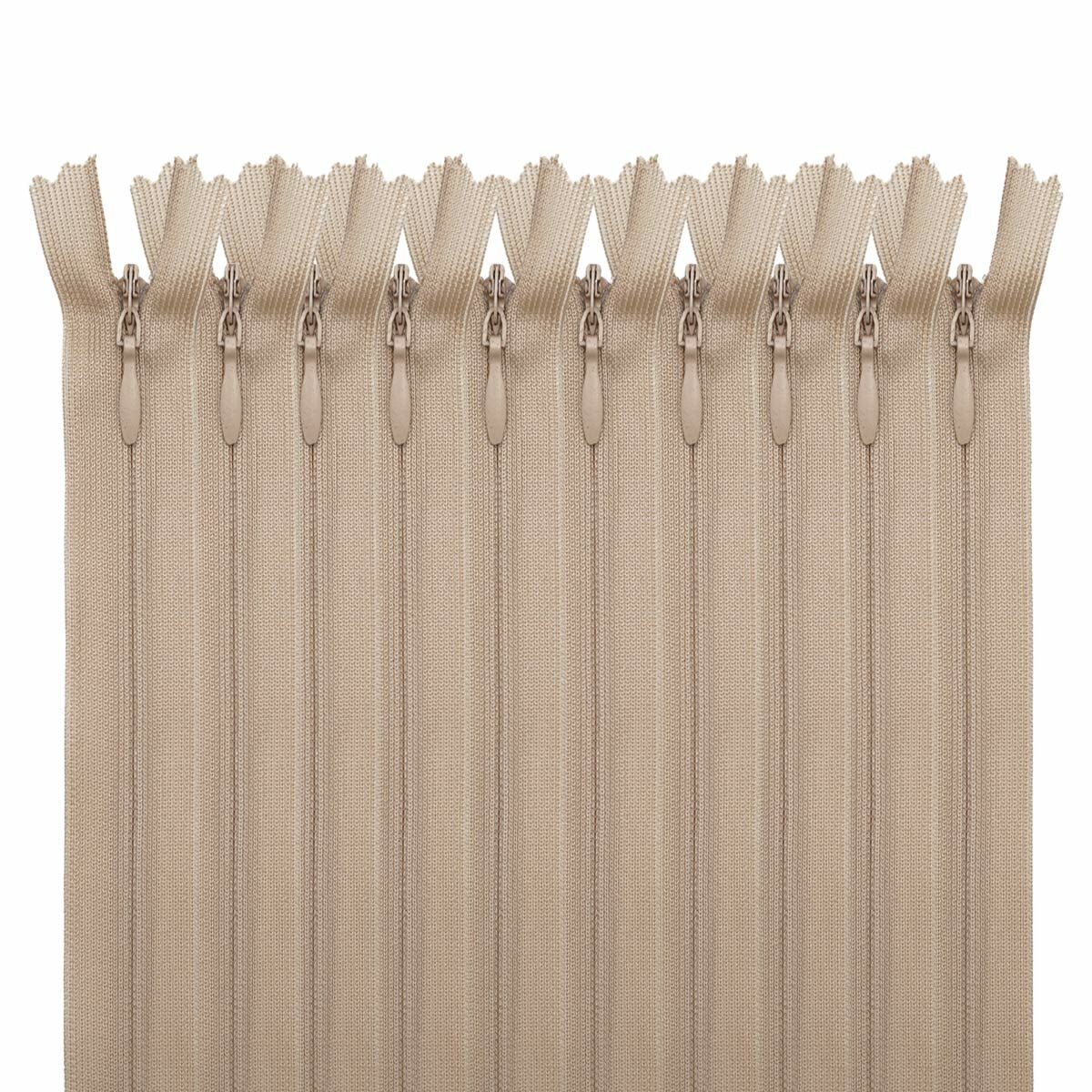 Молния потайная неразъёмная Т3, 20 см (нейлон), 10 шт (F293 светло-коричневый)