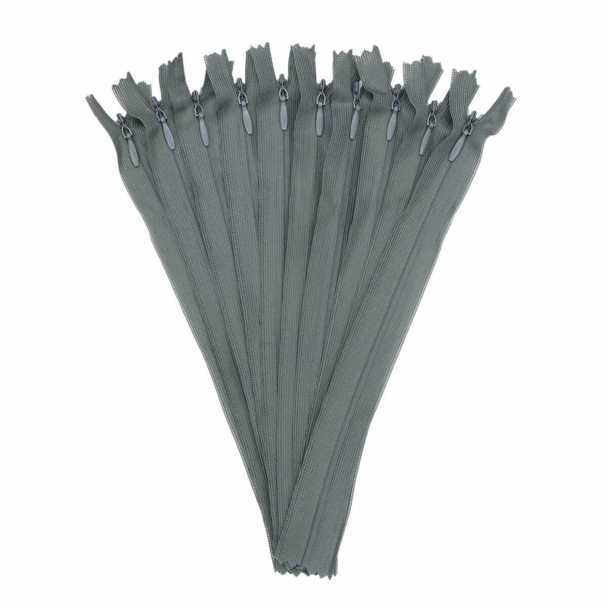 Молния потайная неразъёмная Т3, 20 см (нейлон), 10 шт (F325 серо-зелёный)
