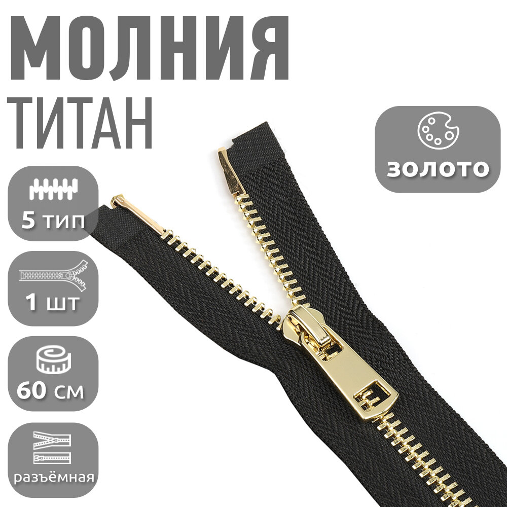 Купить Молния разъемная MaxZipper мет. Титан №5 золото 60см цв.F322 черный уп.1 шт