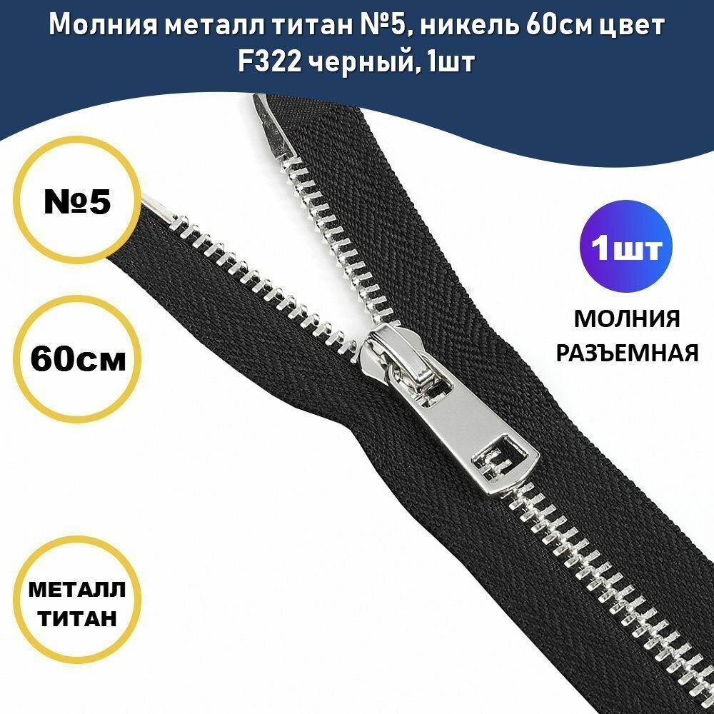 Молния разъемная MaxZipper мет. Титан №5 черный никель 60см цв.F322 черный уп.1 шт