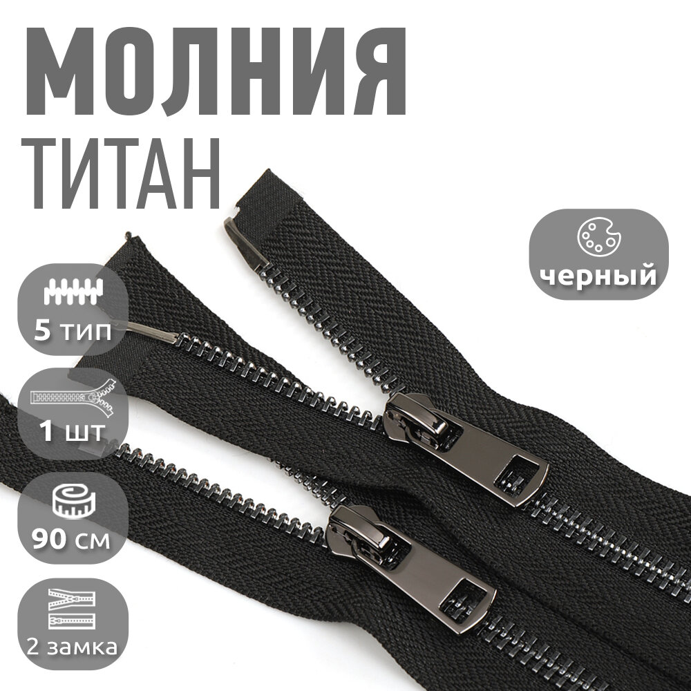 Молния разъемная MaxZipper мет. Титан №5 2 замка черный никель 90см цв. F322 черный уп.1 шт
