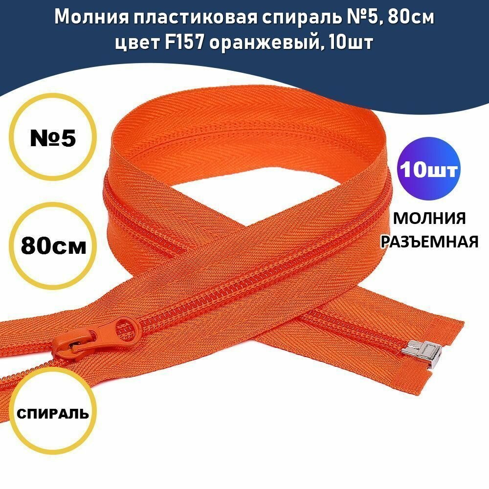 Молния MaxZipper пластиковая, Спираль, №5-N, 70 см, цвет F157, оранжевый, 10 шт (N-F. ПЛ5N.70.157)