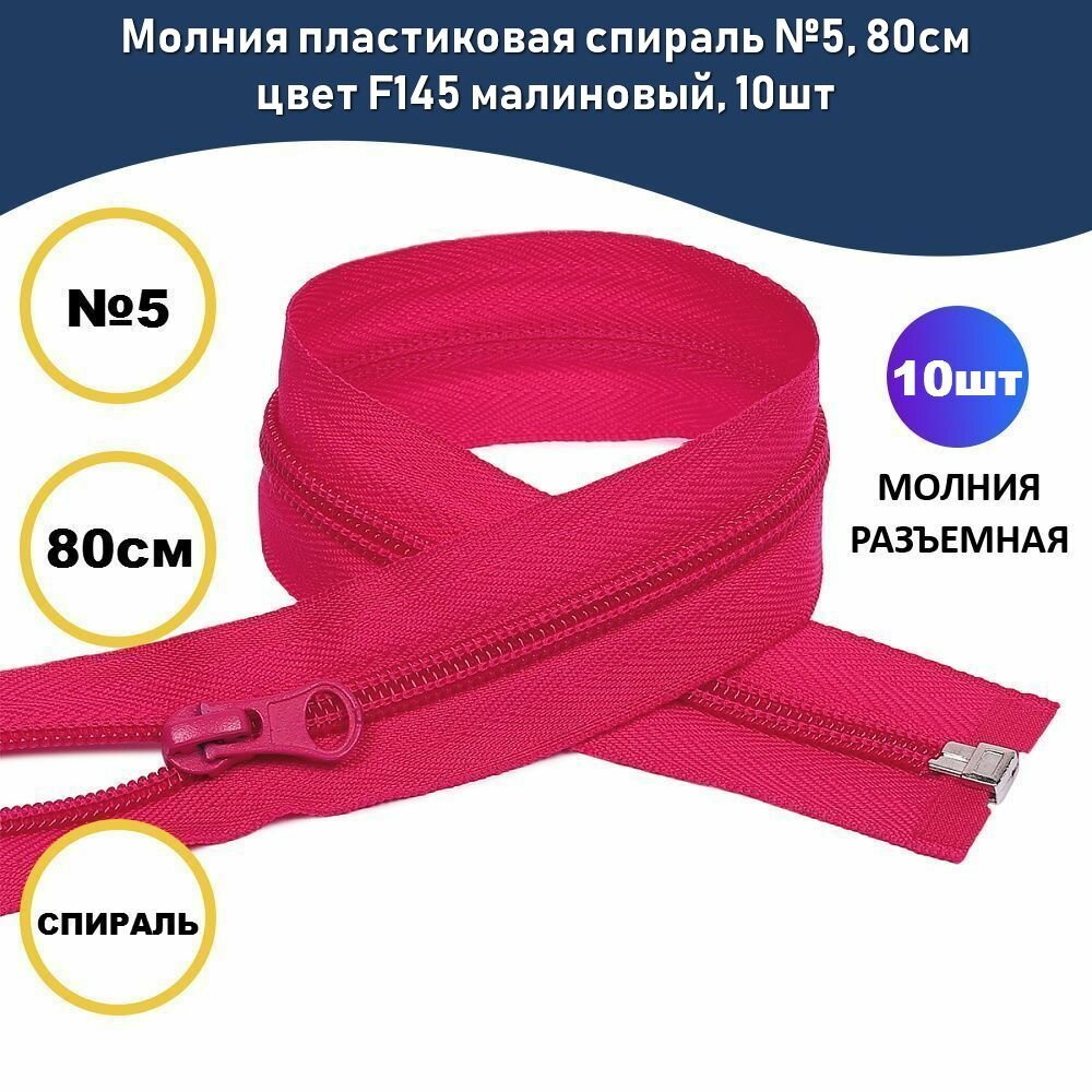 Молния MaxZipper пластиковая, Спираль, №5-N, 50 см, цвет F145, малиновый, 10 шт (N-F.ПЛ5N.50.145)
