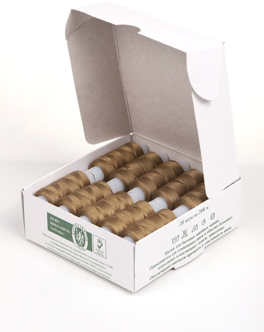 Нитки швейные армированные ПНК им. Кирова, 35ЛЛ, 200 м, цветные (4802 бежевый), 20 шт