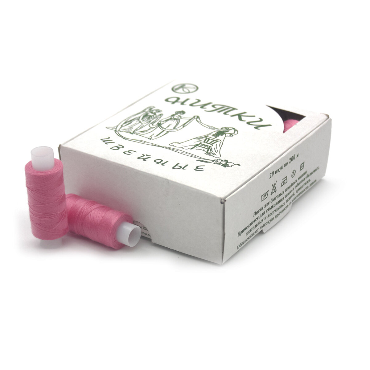 Нитки ПНК им. Кирова Швейные, армированные, 200 м, №1102, светло-розовые, 20 шт (45 ЛЛ)