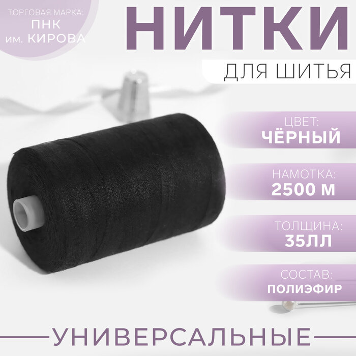 Купить Нитки 35ЛЛ, 2500 м, цвет чёрный №6818