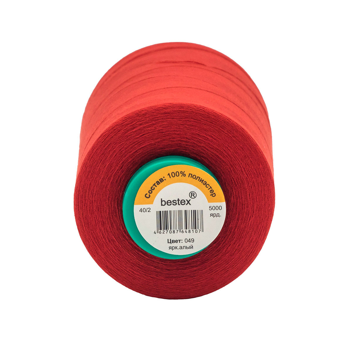 Купить Нитки промышленные Bestex 40/2, универсальные, 5000 ярдов (049 яркий алый)