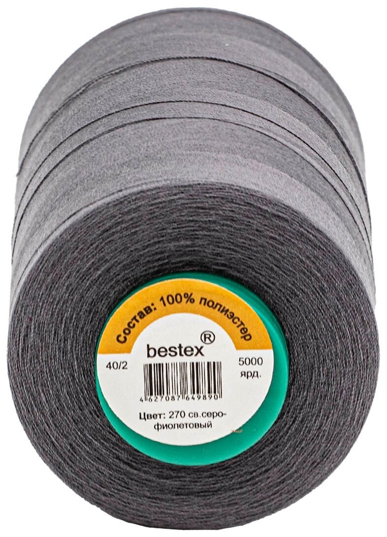 Нитки швейные универсальные 40/2, 5000 ярд, промышленные, Bestex (271 серо-фиолетовый)