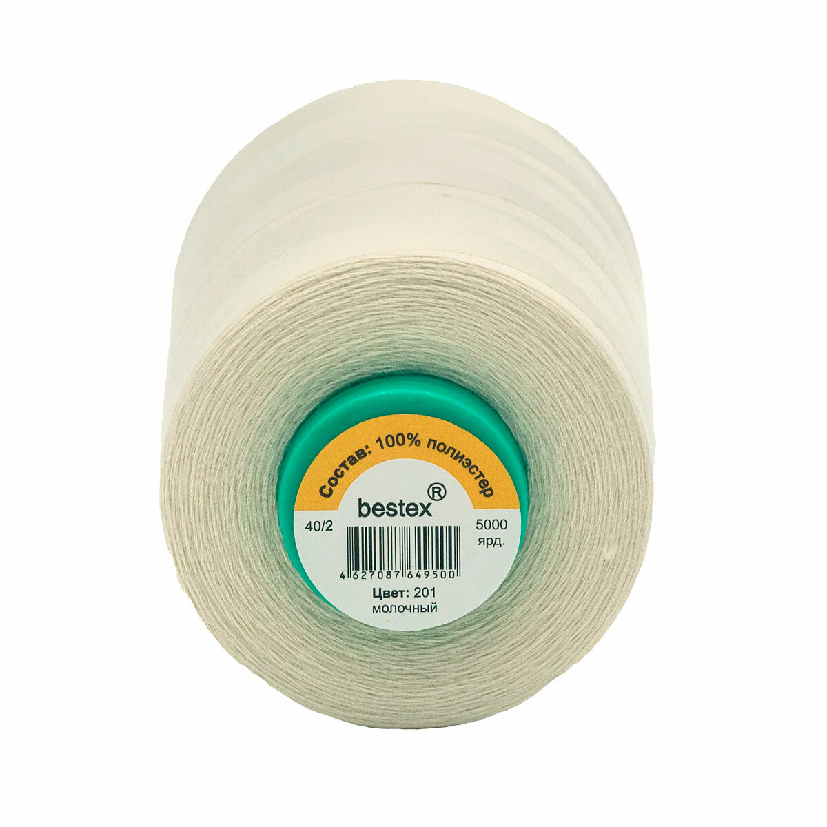 Нитки швейные универсальные 40/2, 5000 ярд, промышленные, Bestex (201 молочный)