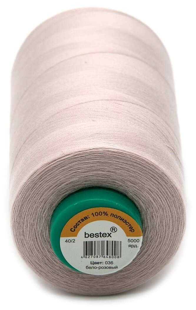 Нитки швейные универсальные 40/2, 5000 ярд, промышленные, Bestex (036 бело-розовый)