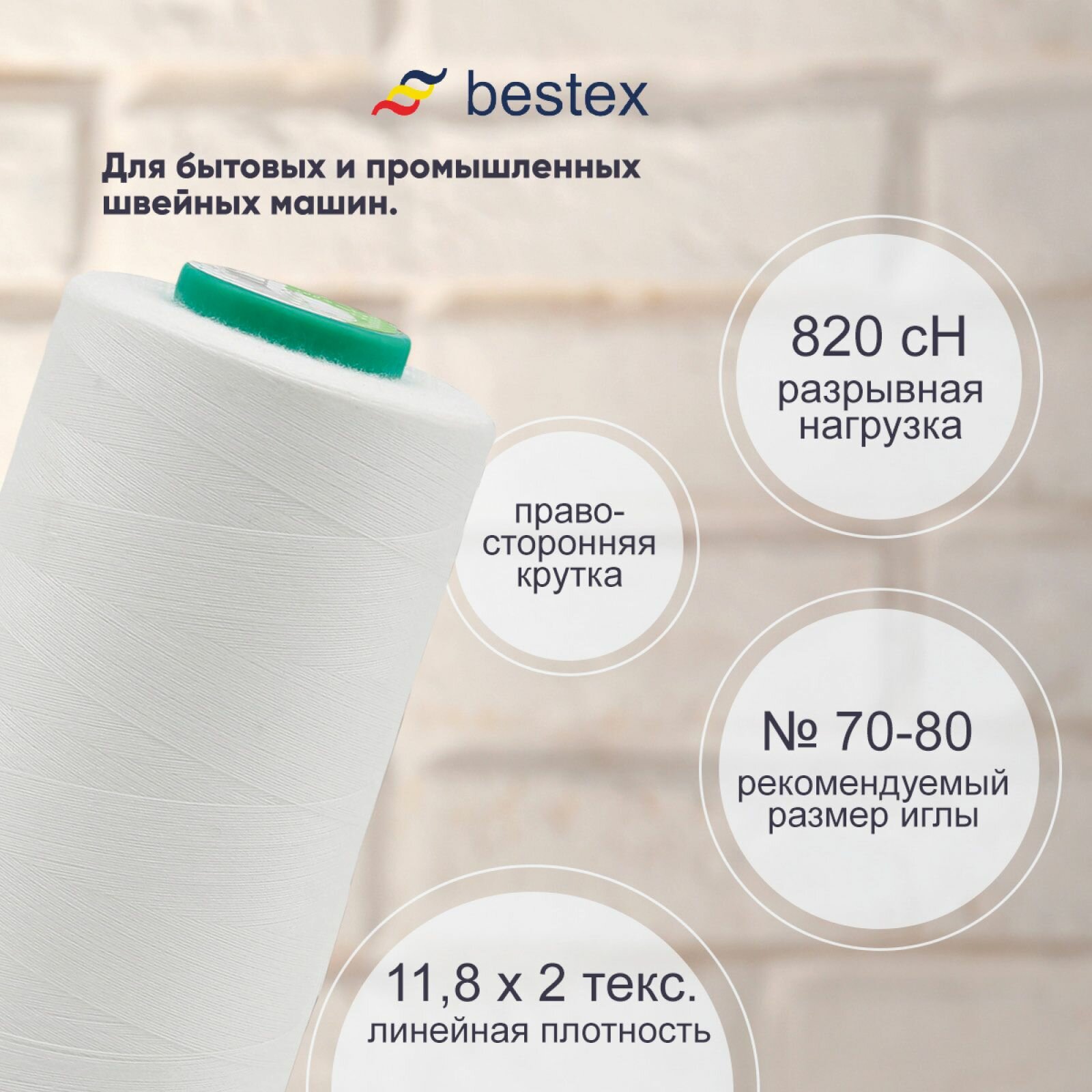 Нитки промышленные 50/2, для тонких тканей, 5000 ярдов, Bestex (001 белый)