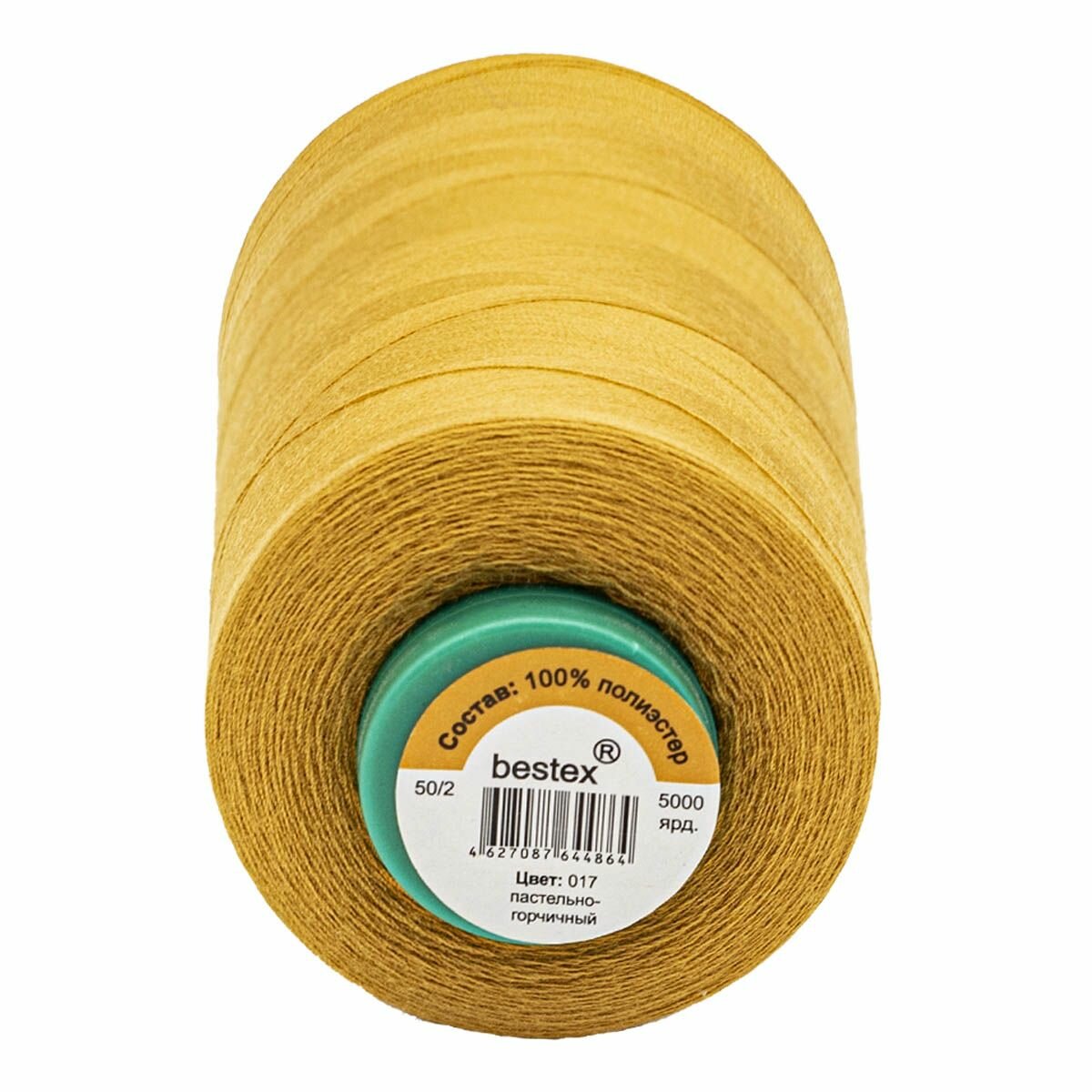Купить Нитки промышленные 50/2, для тонких тканей, 5000 ярдов, Bestex (017 пастельно-горчичный)