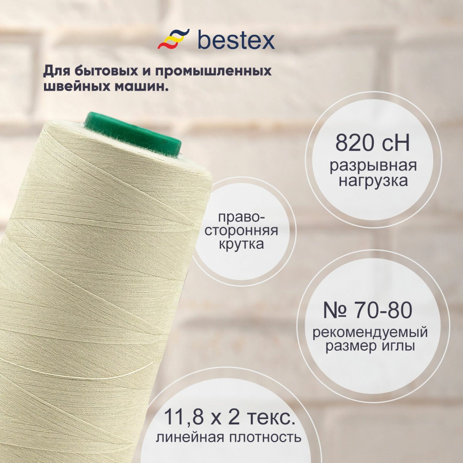 Нитки промышленные 50/2, для тонких тканей, 5000 ярдов, Bestex (202 молочно-бежевый)