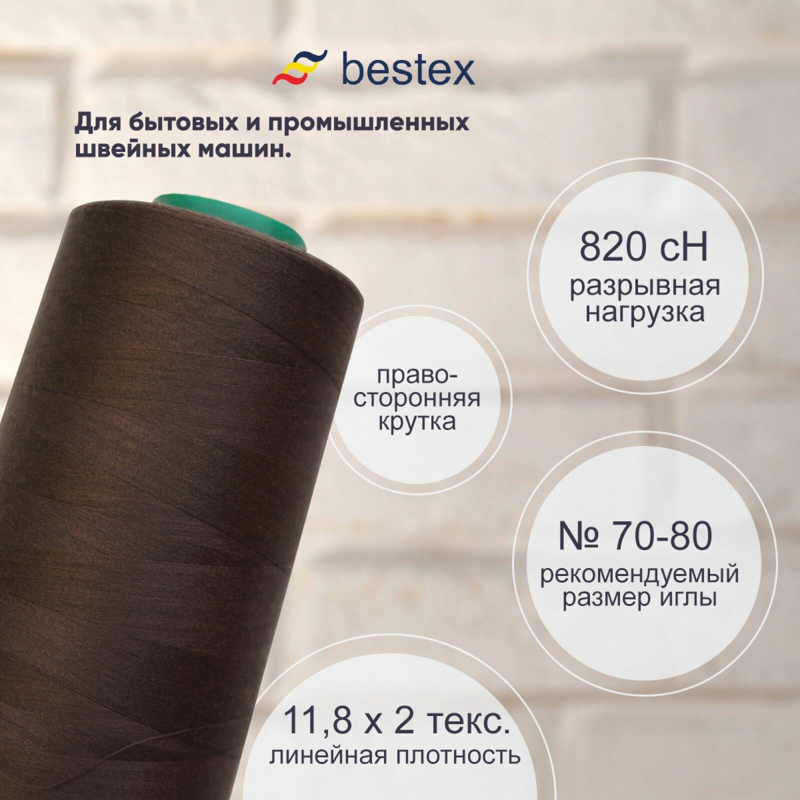 Нитки промышленные 50/2, для тонких тканей, 5000 ярдов, Bestex (387 темный шоколад)