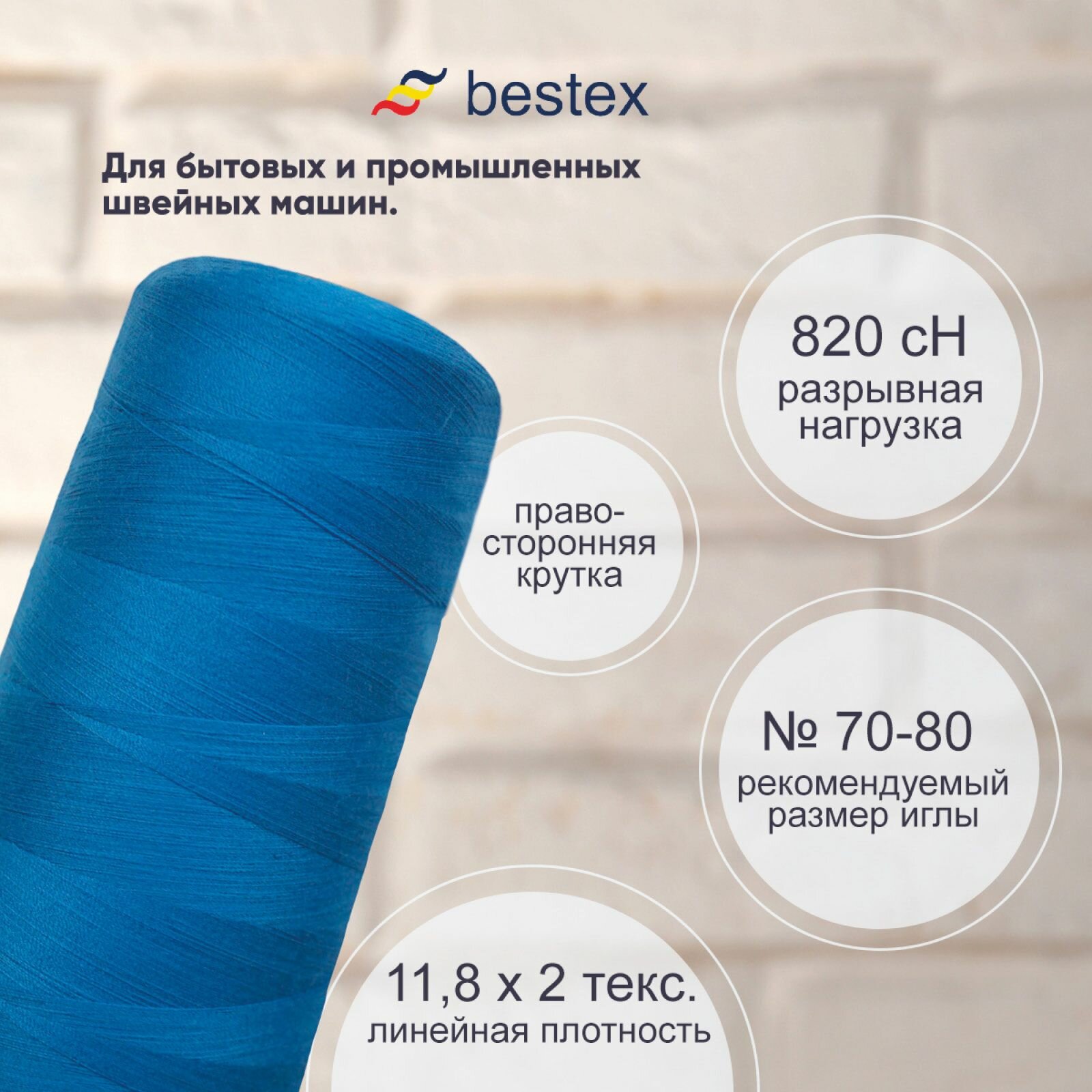 СохранитьНитки промышленные 50/2, для тонких тканей, 5000 ярдов, Bestex (092 яркий василек) интересное: