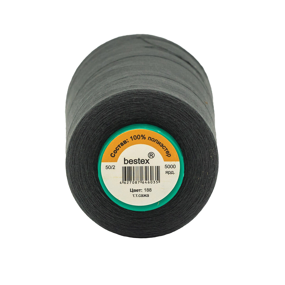 Купить Нитки промышленные 50/2, для тонких тканей, 5000 ярдов, Bestex (188 темно-серый)