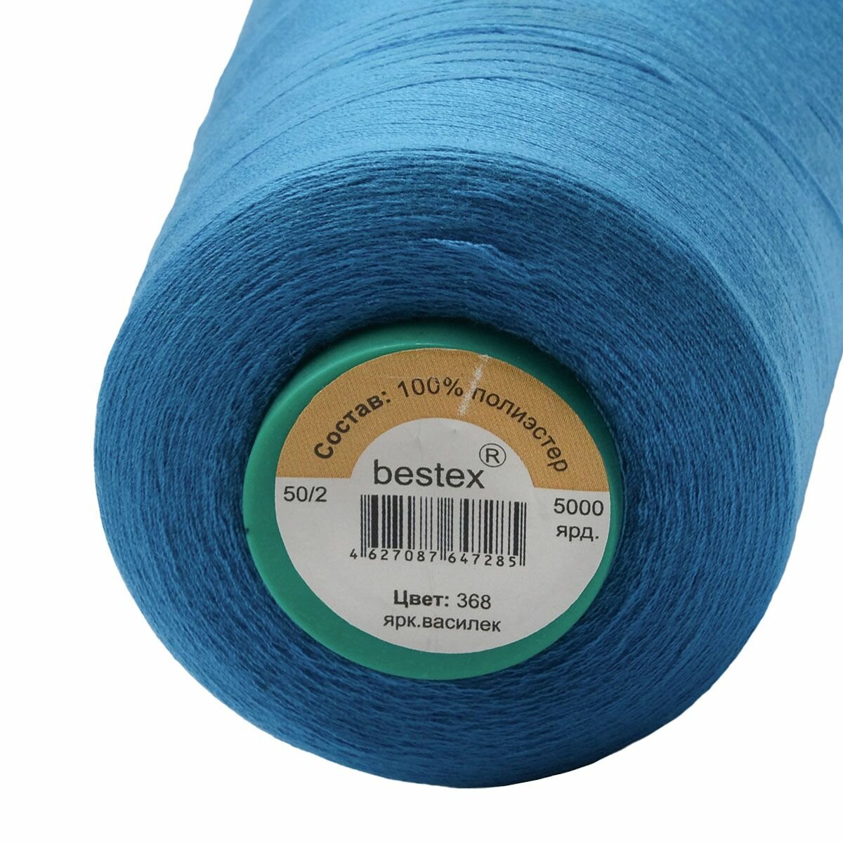 Нитки промышленные 50/2, для тонких тканей, 5000 ярдов, Bestex (092 яркий василек)