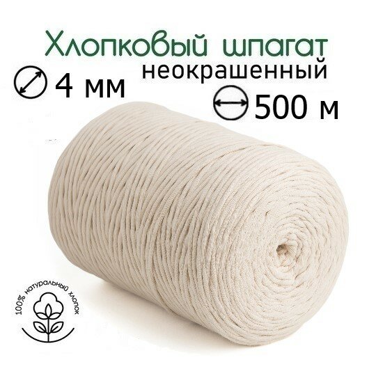 Шпагат хлопковый 4 мм 500 м неокрашенный для макраме, вязания, рукоделия интересное: