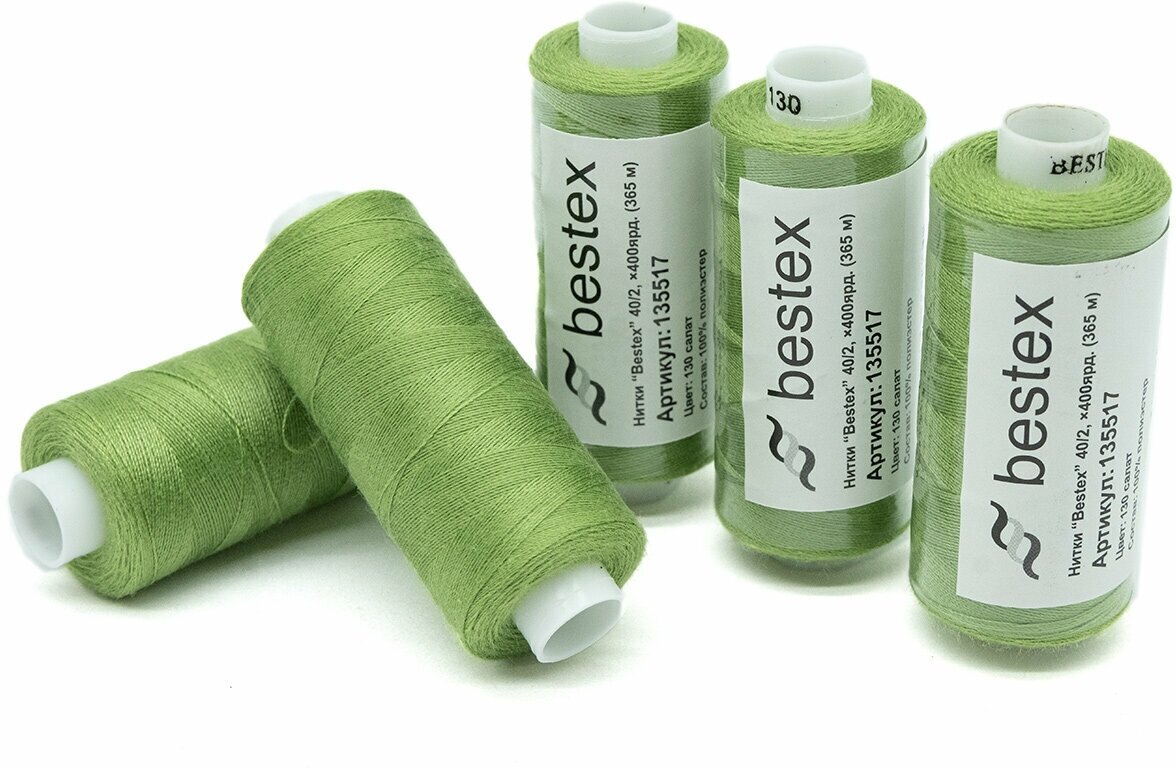 Купить Нитки швейные Bestex 40/2, 400ярдов, 130, салат, 100%полиэстер, 1шт