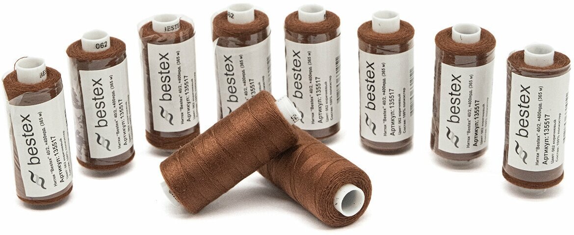 СохранитьНитки швейные Bestex 40/2, 400ярдов, 062, коричневый, 100%полиэстер, 1шт интересное: