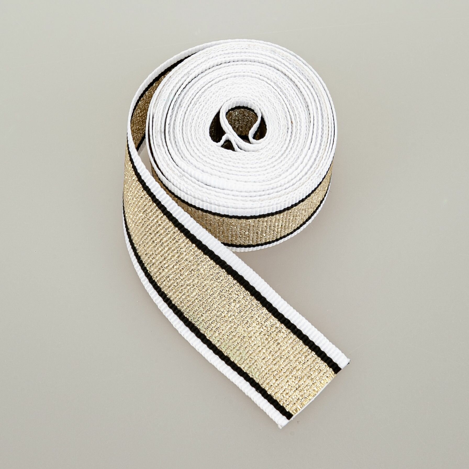 Купить Тесьма /лента репсовая для шитья с люрексом золото/белый ш.25 мм, в упаковке 2 м, для шитья, творчества, рукоделия.
