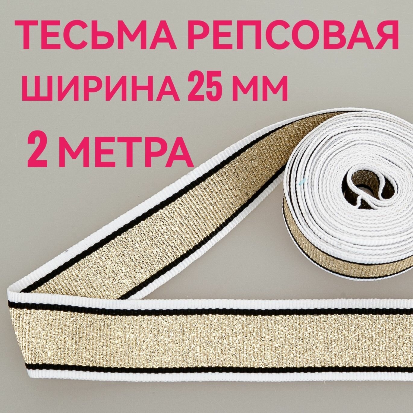 Тесьма /лента репсовая для шитья с люрексом золото/белый ш.25 мм, в упаковке 2 м, для шитья, творчества, рукоделия. интересное: