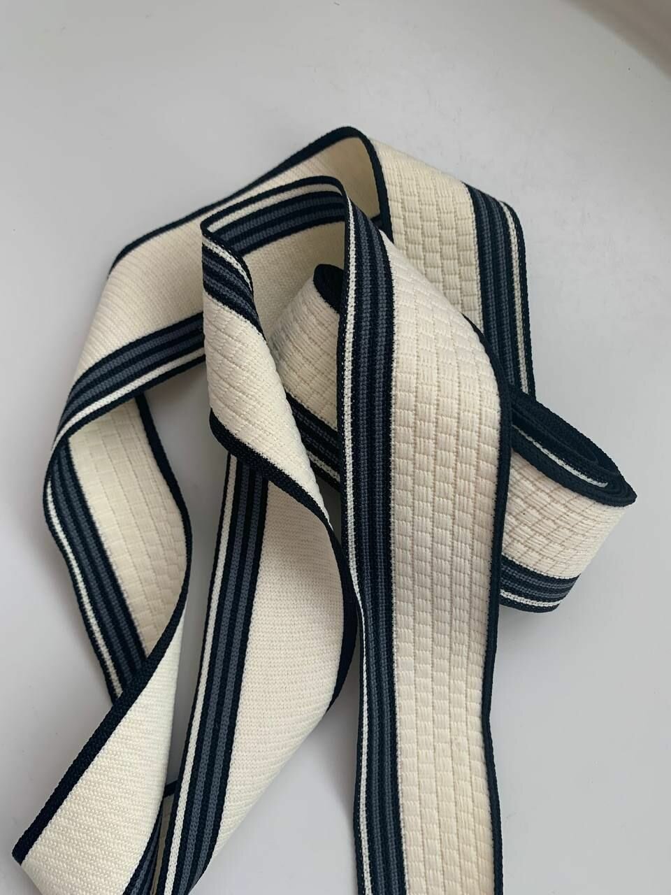 Сохранить3м. Тесьма лента трикотажная лампас. (шир. 4 см), для шитья и рукоделия. Цвет молочный. интересное: