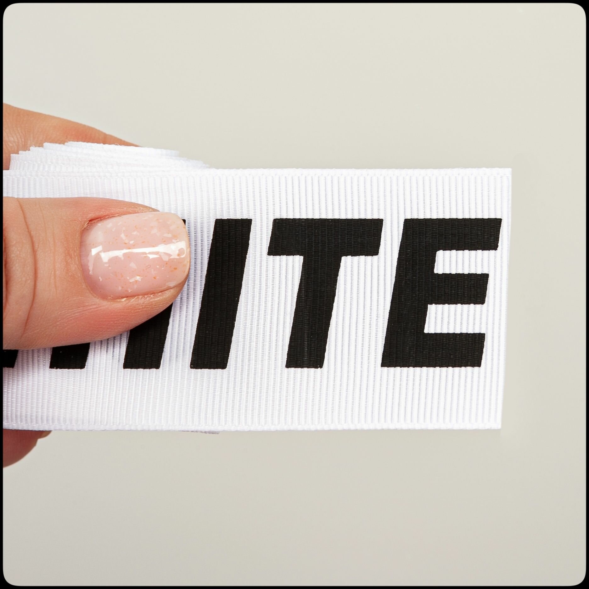 Лента/ тесьма репсовая для шитья черный на белом с принтом OFF ш.38 мм, в уп.3 м, для шитья, творчества, рукоделия.