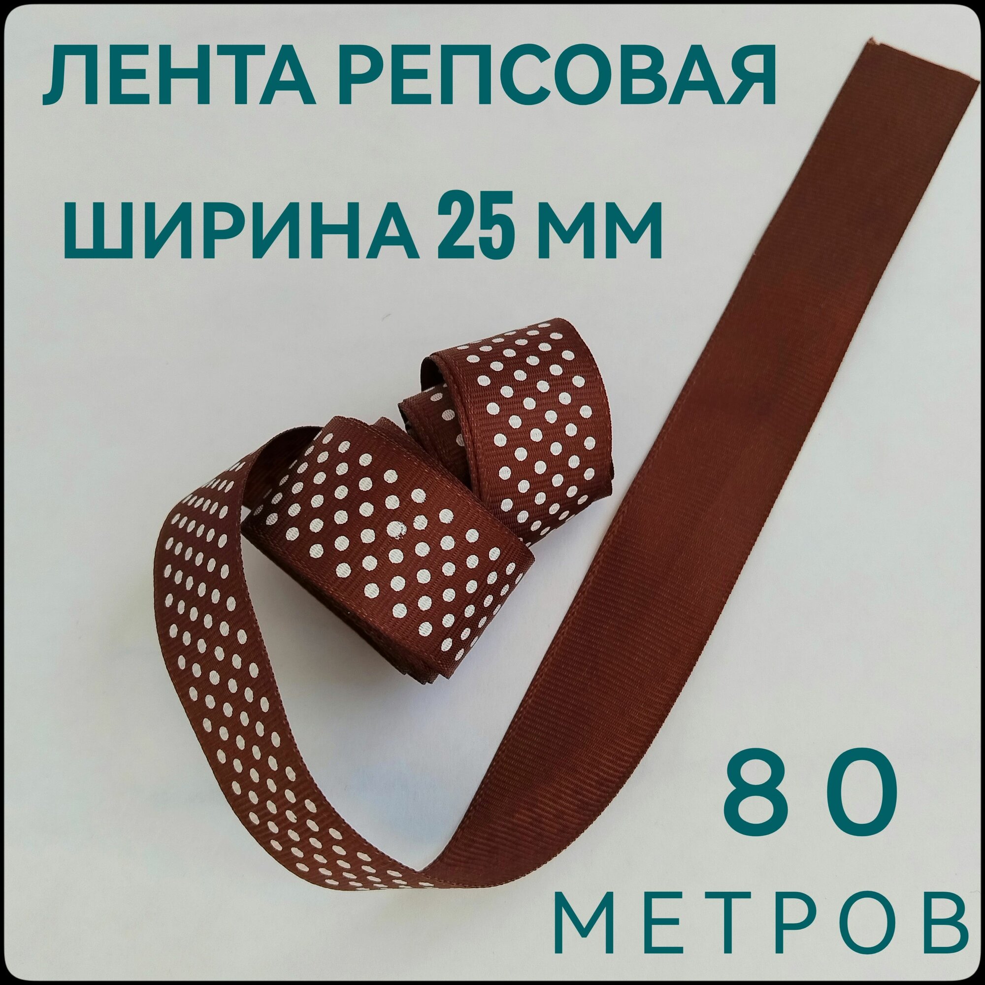 Купить Лента/ тесьма репсовая для шитья коричневая в белый горох ш.25 мм, в уп.80 м, для шитья, творчества, рукоделия.