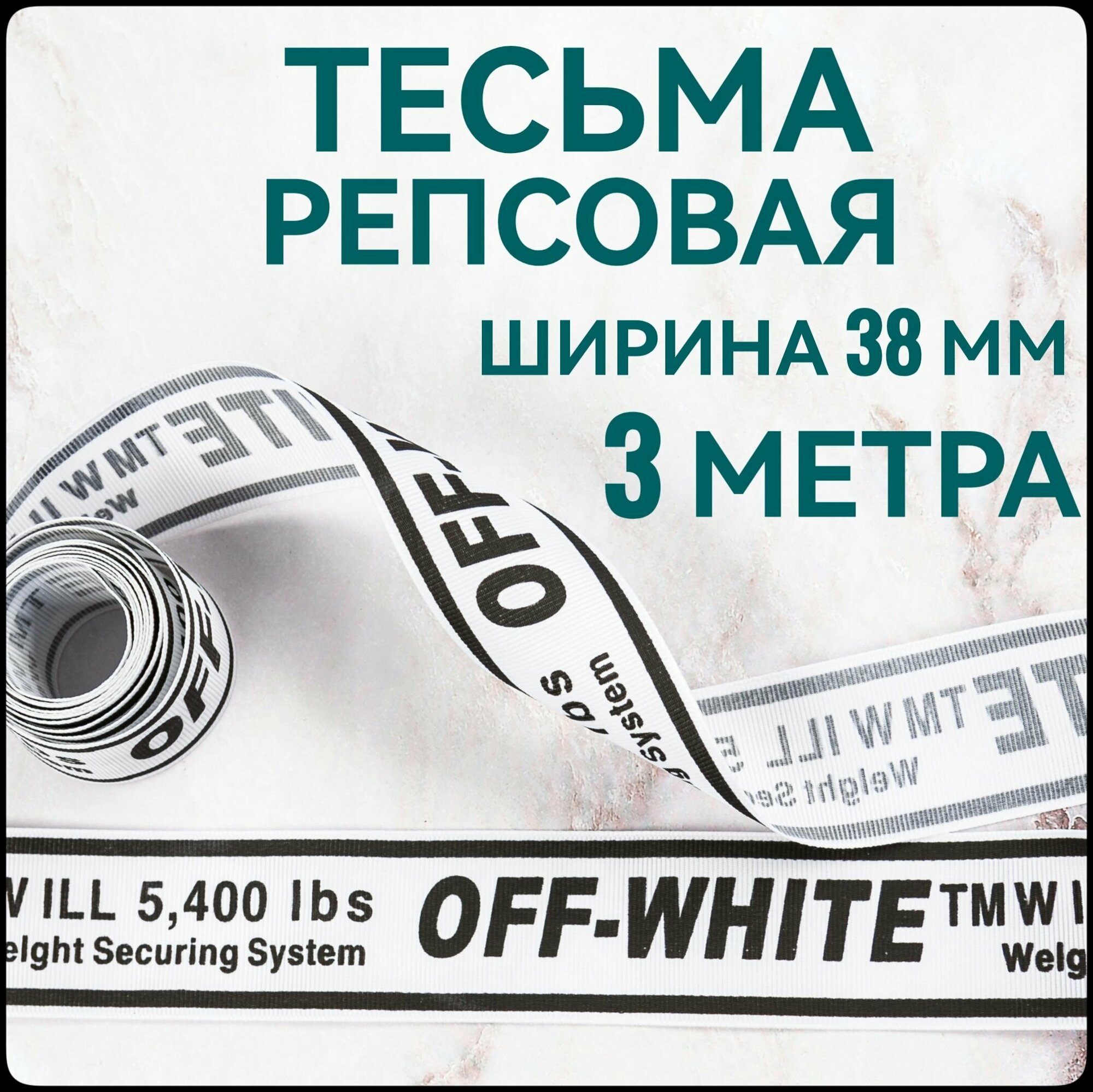 Купить Тесьма /лента репсовая принт OFF черный на белом, ш.38 мм, в упаковке 3 м, для шитья, творчества, рукоделия.
