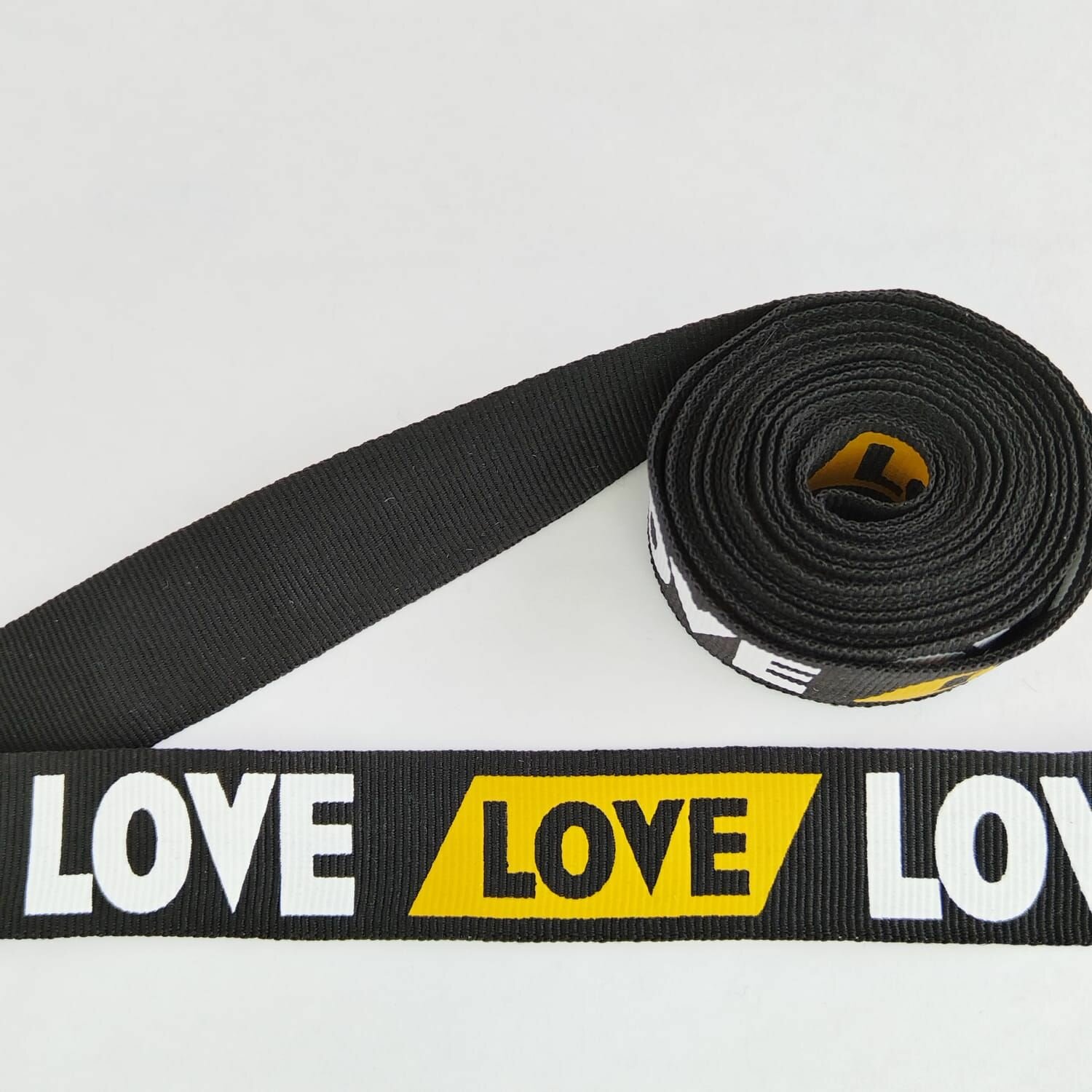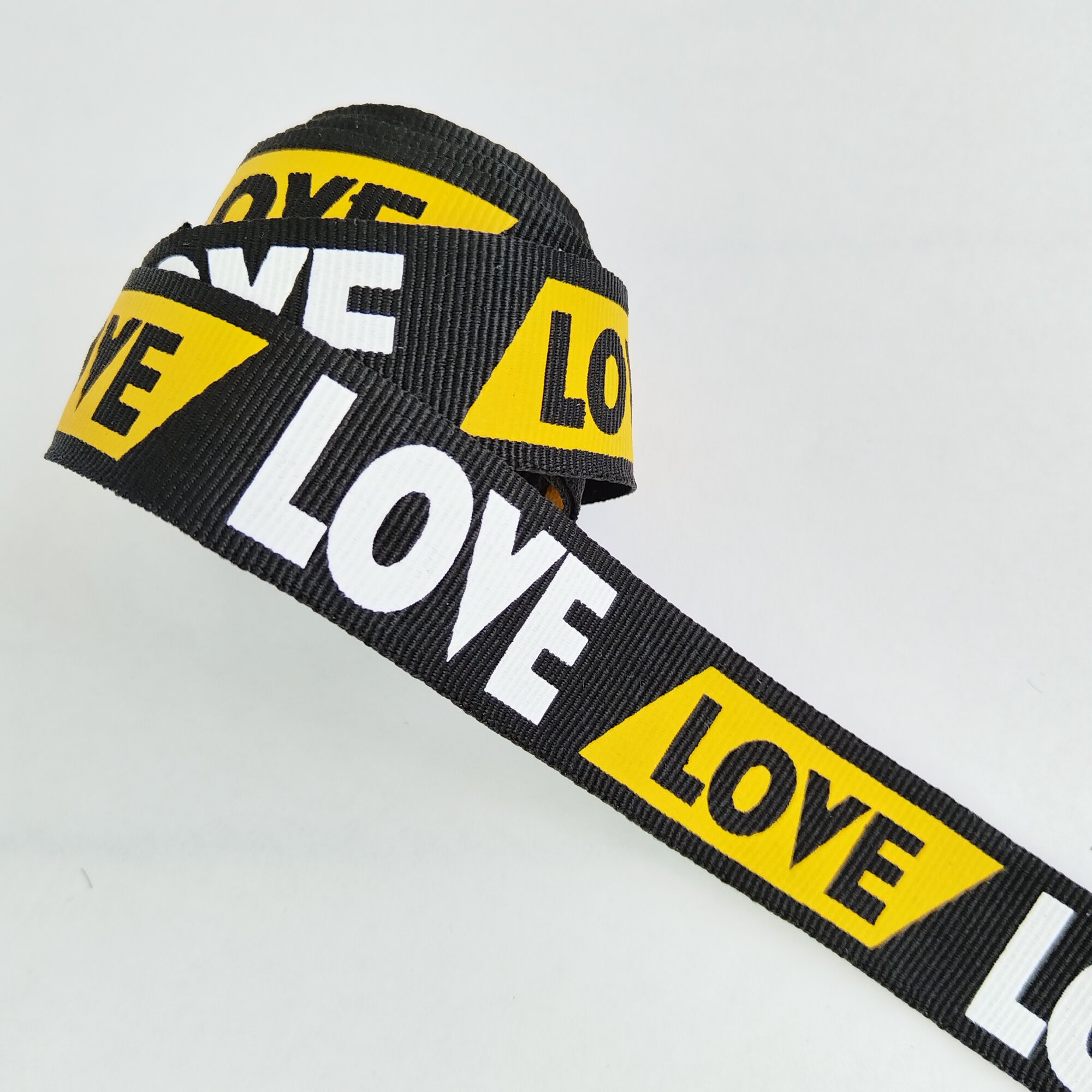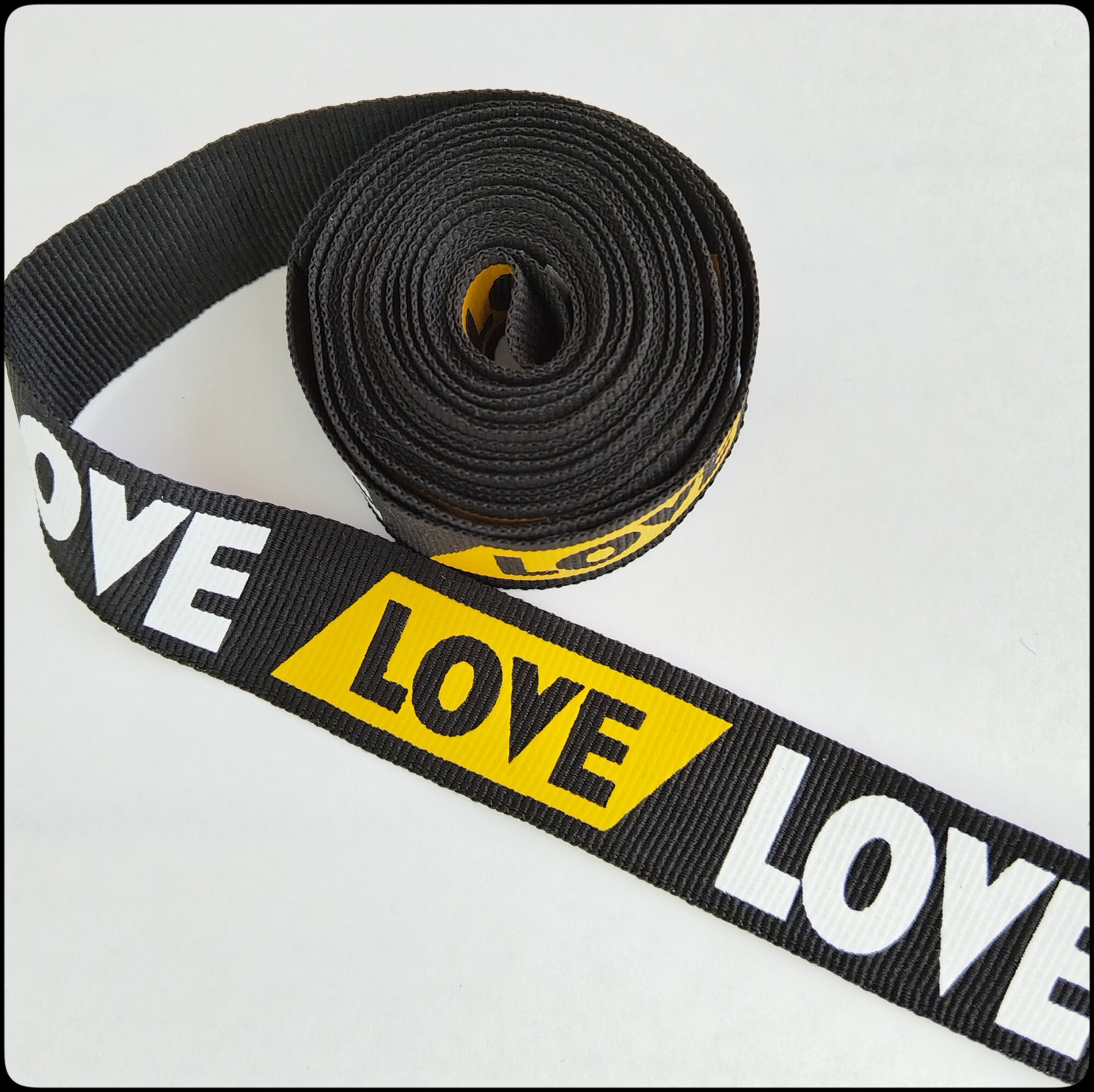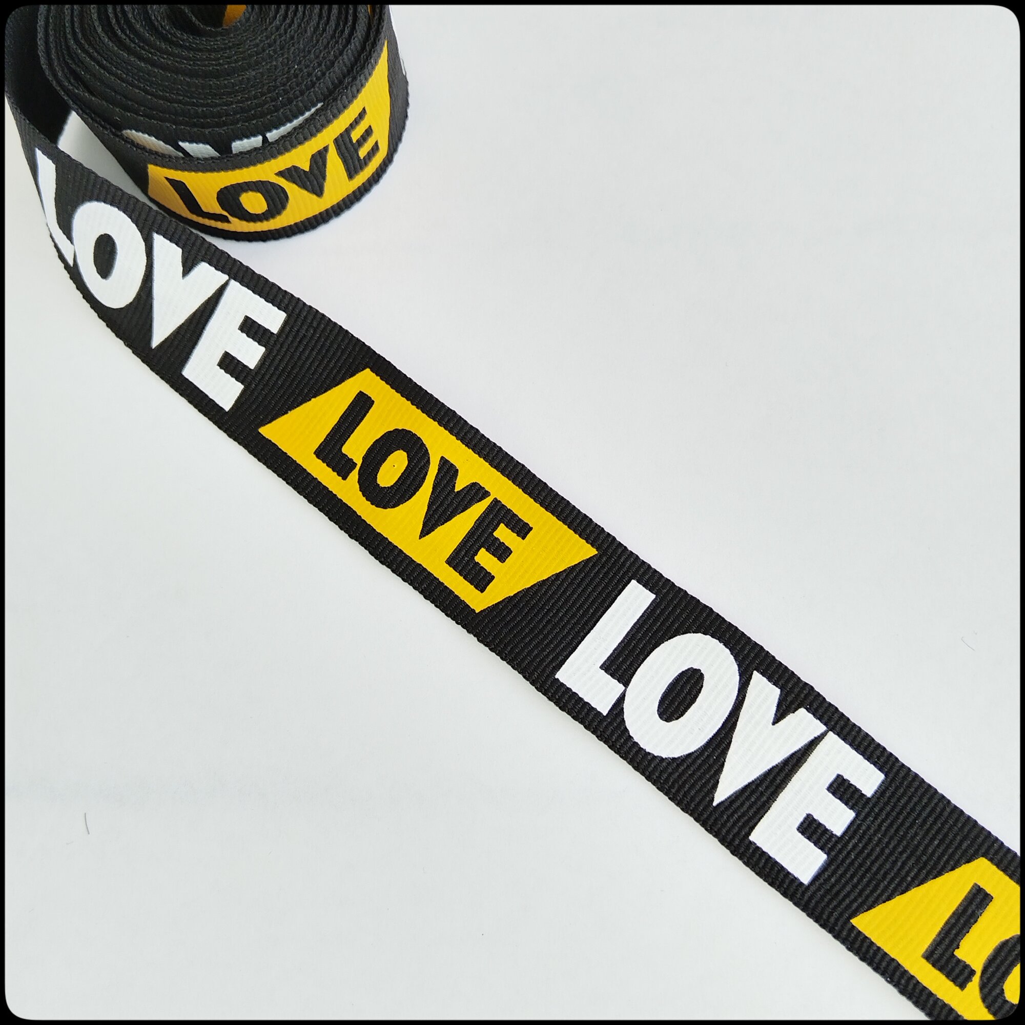 Тесьма /лента репсовая для шитья принт LOVE ш.25 мм, в упаковке 3 м, для шитья, творчества, рукоделия.