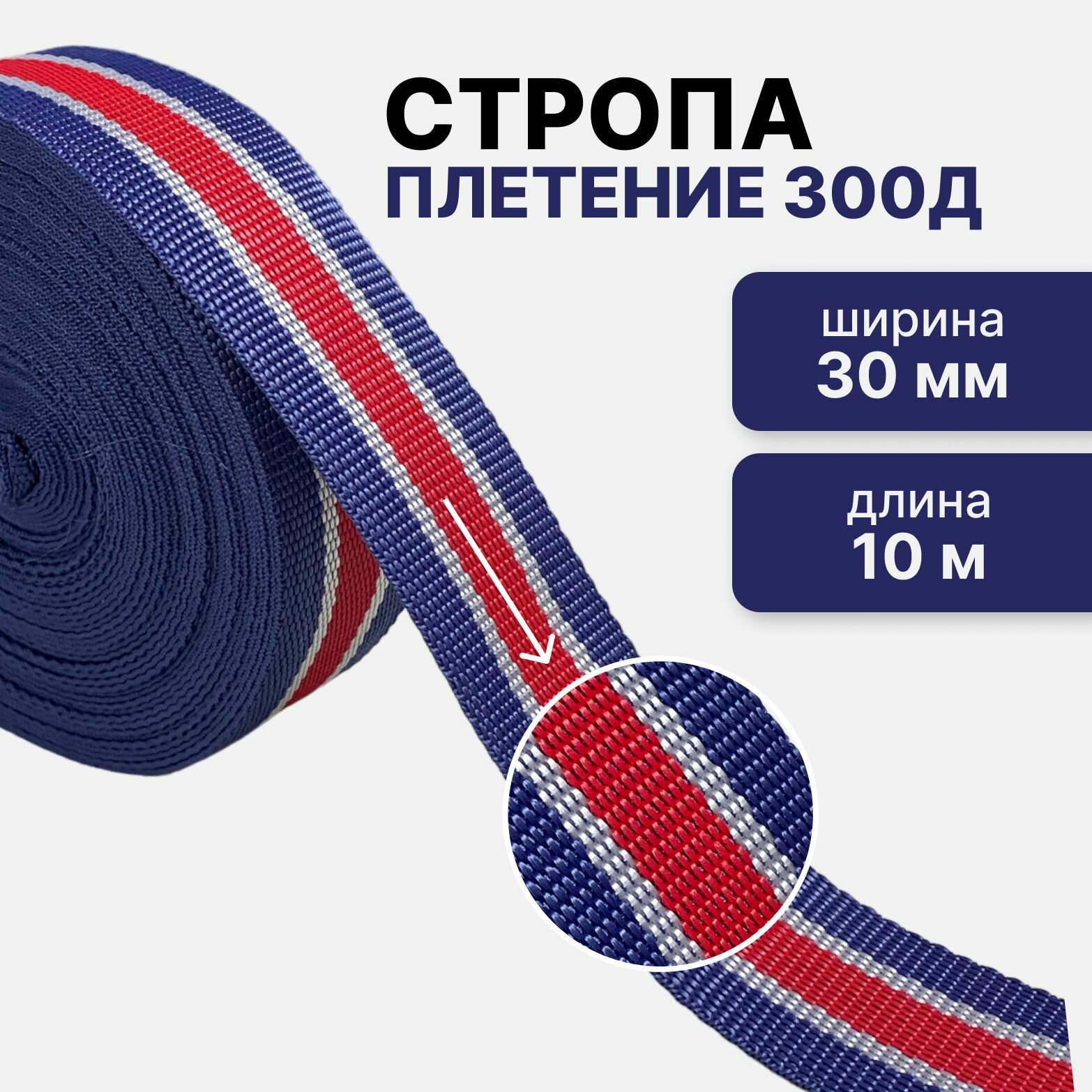 Купить Стропа текстильная ременная лента, ширина 30 мм, (плетение 300Д), цветная (синий/красный), 10м