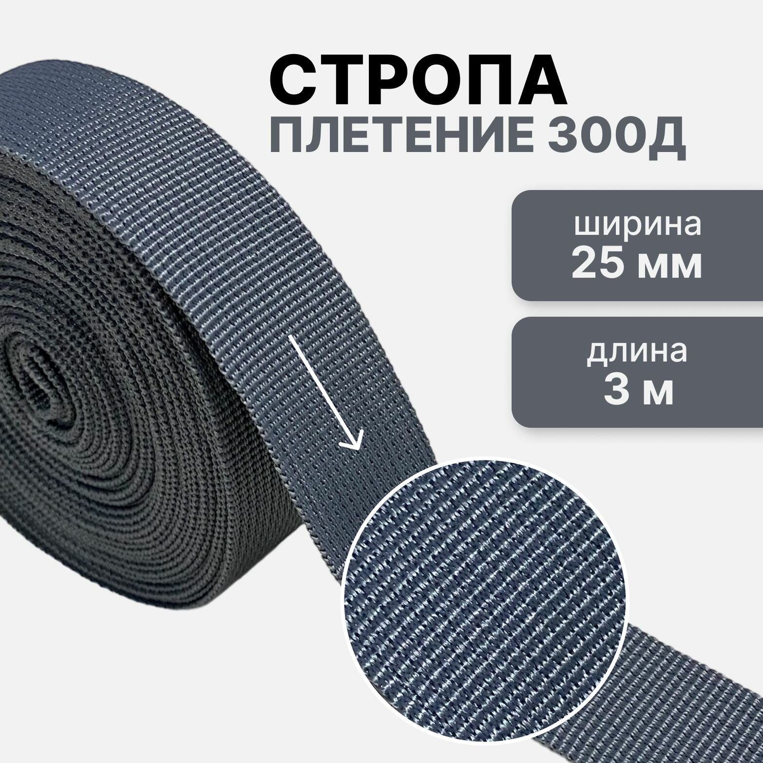 Купить Стропа текстильная ременная лента, ширина 25 мм, (плетение 300Д), серый, длина 3м